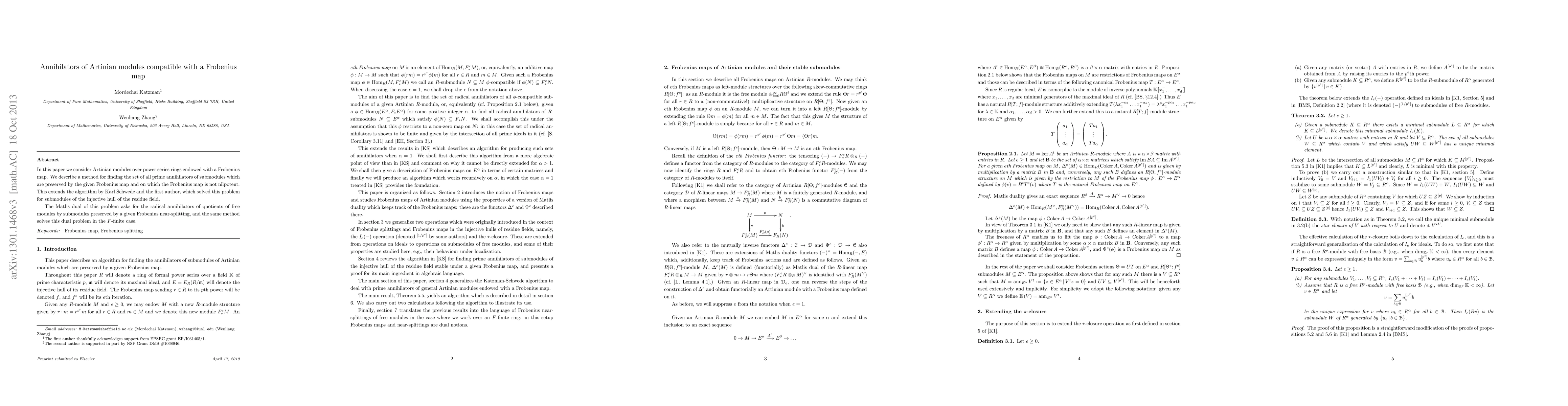 In this paper we consider Artinian modules over power series rings endowed with a Frobenius map. We describe a method for finding the set of all prime annihilators of submodules which are preserved by the given Frobenius map and on which the Frobenius map is not nilpotent. This extends the algorithm by Karl Schwede and the first author, which solved this problem for submodules of the injective hull of the residue field. The Matlis dual of this problem asks for the radical annihilators of quotients of free modules by submodules preserved by a given Frobenius near-splitting, and the same method solves this dual problem in the $F$-finite case.