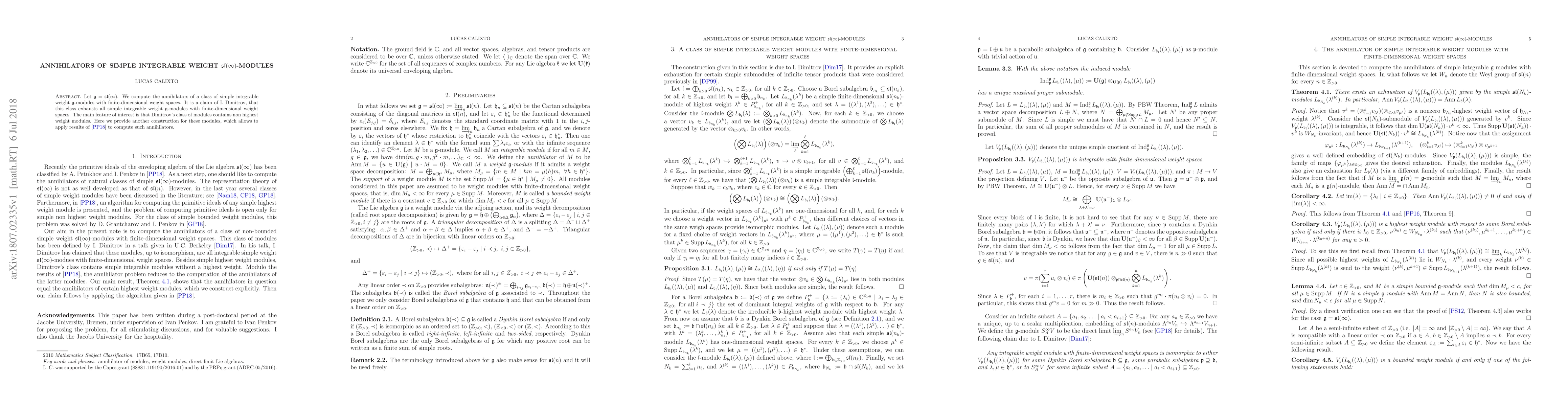 Let $\mathfrak{g}=\mathfrak{sl}(\infty)$. We compute the annihilators of a class of simple integrable weight $\mathfrak{g}$-modules with finite-dimensional weight spaces. It is a claim of I. Dimitrov, that this class exhausts all simple integrable weight $\mathfrak{g}$-modules with finite-dimensional weight spaces. The main feature of interest is that Dimitrov's class of modules contains non highest weight modules. Here we provide another construction for these modules, which allows to apply results of [PP18] to compute such annihilators.