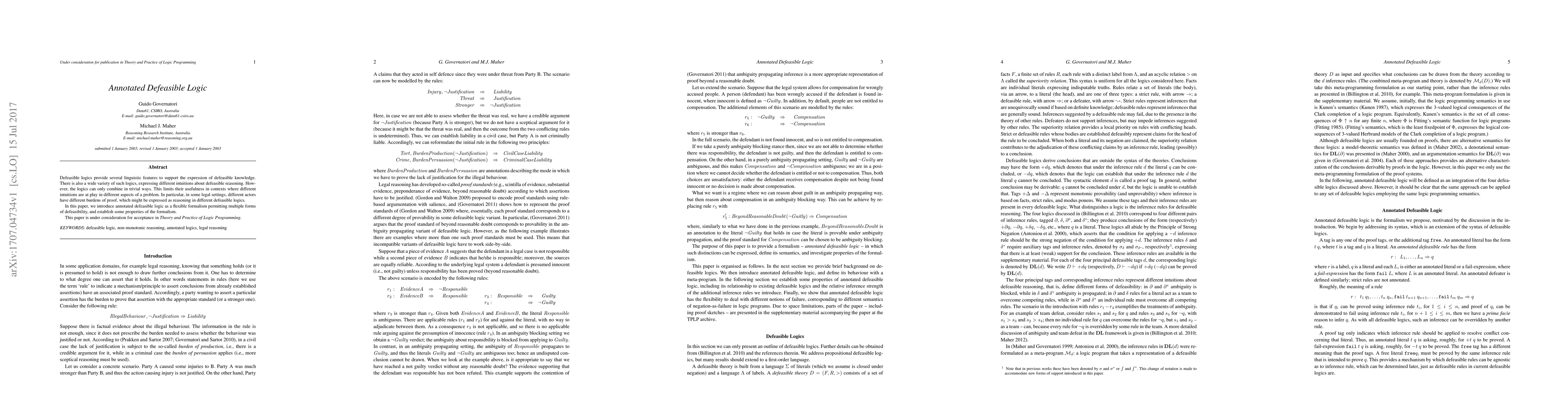 Defeasible logics provide several linguistic features to support the expression of defeasible knowledge. There is also a wide variety of such logics, expressing different intuitions about defeasible reasoning. However, the logics can only combine in trivial ways. This limits their usefulness in contexts where different intuitions are at play in different aspects of a problem. In particular, in some legal settings, different actors have different burdens of proof, which might be expressed as reasoning in different defeasible logics. In this paper, we introduce annotated defeasible logic as a flexible formalism permitting multiple forms of defeasibility, and establish some properties of the formalism. This paper is under consideration for acceptance in Theory and Practice of Logic Programming.