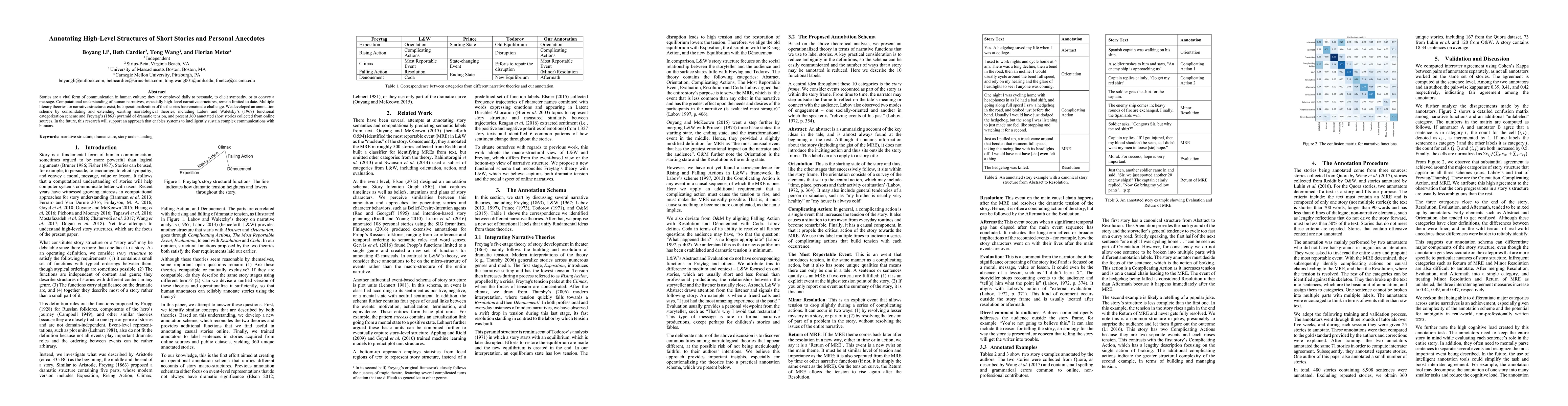 Researchers developed an annotation scheme to categorize high-level narrative structures in short stories and personal anecdotes, creating a dataset of 360 annotated stories that can support systems in understanding complex human communication.