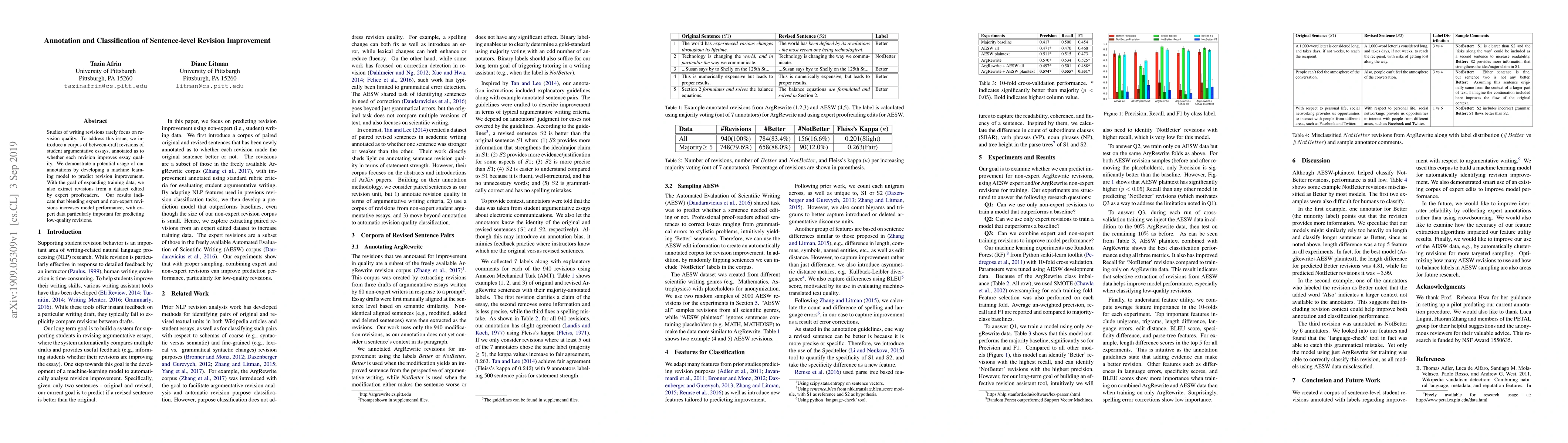 This paper introduces a corpus of student essay revisions annotated for quality improvement and develops a machine learning model to predict revision effectiveness. Combining expert and non-expert revisions enhances model performance, especially for low-quality revisions.