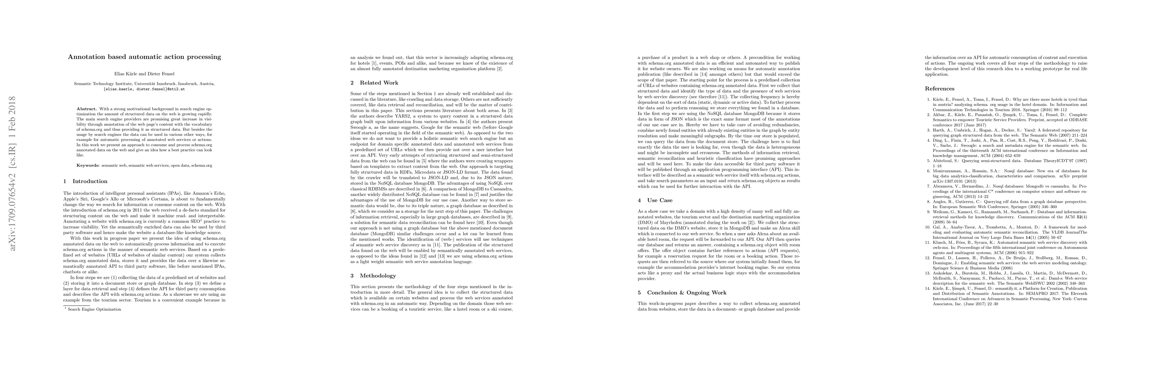 With a strong motivational background in search engine optimization the amount of structured data on the web is growing rapidly. The main search engine providers are promising great increase in visibility through annotation of the web page's content with the vocabulary of schema.org and thus providing it as structured data. But besides the usage by search engines the data can be used in various other ways, for example for automatic processing of annotated web services or actions. In this work we present an approach to consume and process schema.org annotated data on the web and give an idea how a best practice can look like.