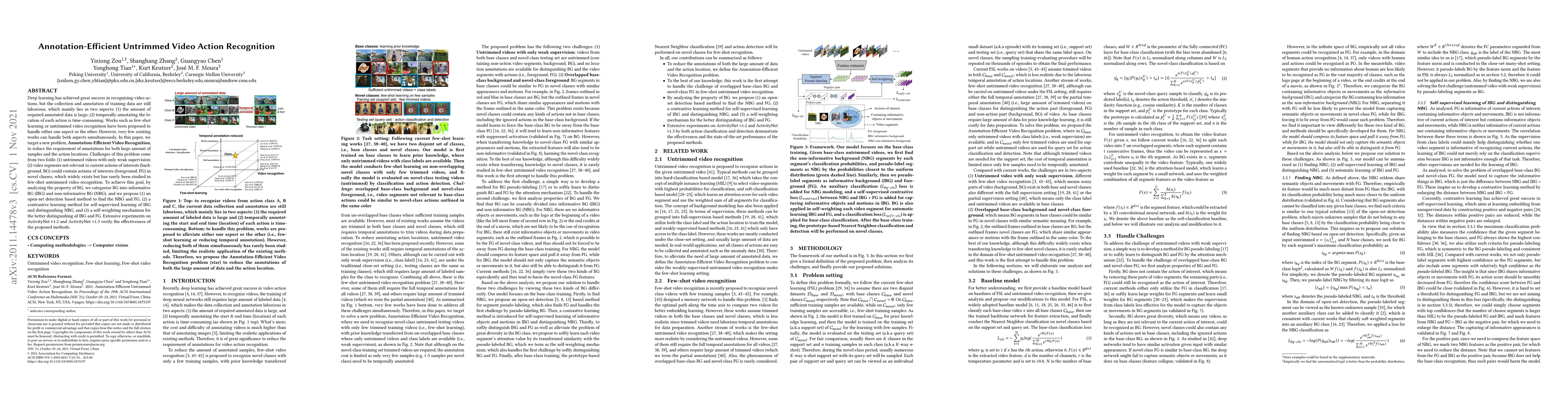 This paper proposes methods for Annotation-Efficient Untrimmed Video Action Recognition, aiming to reduce the need for extensive annotations. It introduces techniques to categorize background segments, employs open-set detection, and uses contrastive learning to distinguish informative from non-informative backgrounds, thereby improving recognition efficiency. Experiments on ActivityNet datasets demonstrate the effectiveness of these approaches.