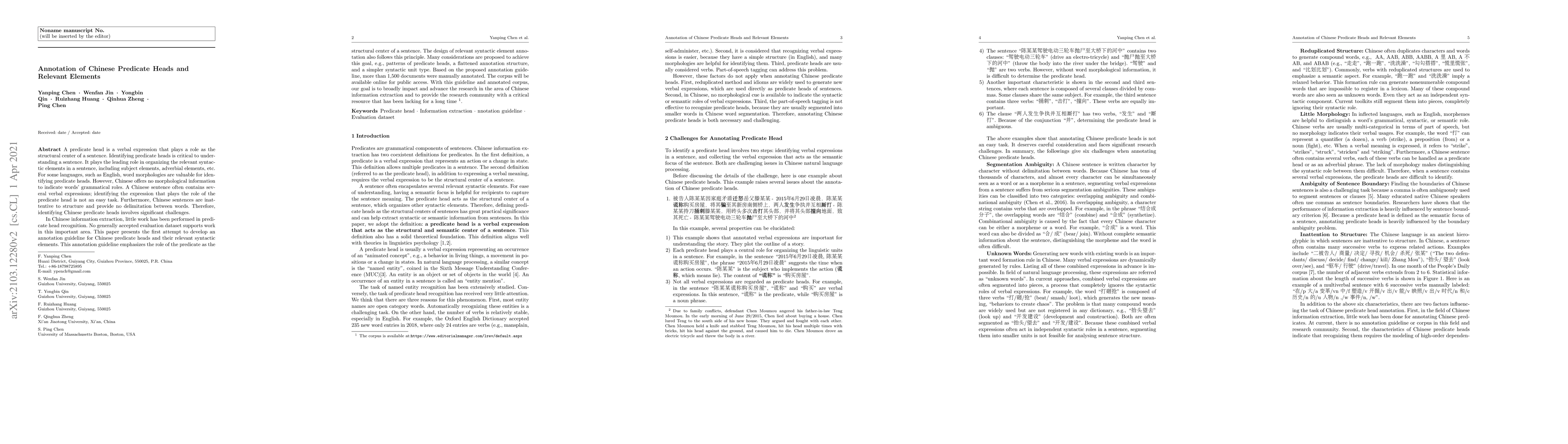 This paper develops an annotation guideline for identifying Chinese predicate heads and relevant syntactic elements, addressing the challenges posed by Chinese language's lack of morphological cues and structural delimitation. The guideline aims to facilitate Chinese information extraction research, and an annotated corpus of over 1,500 documents is made publicly available to support this effort.