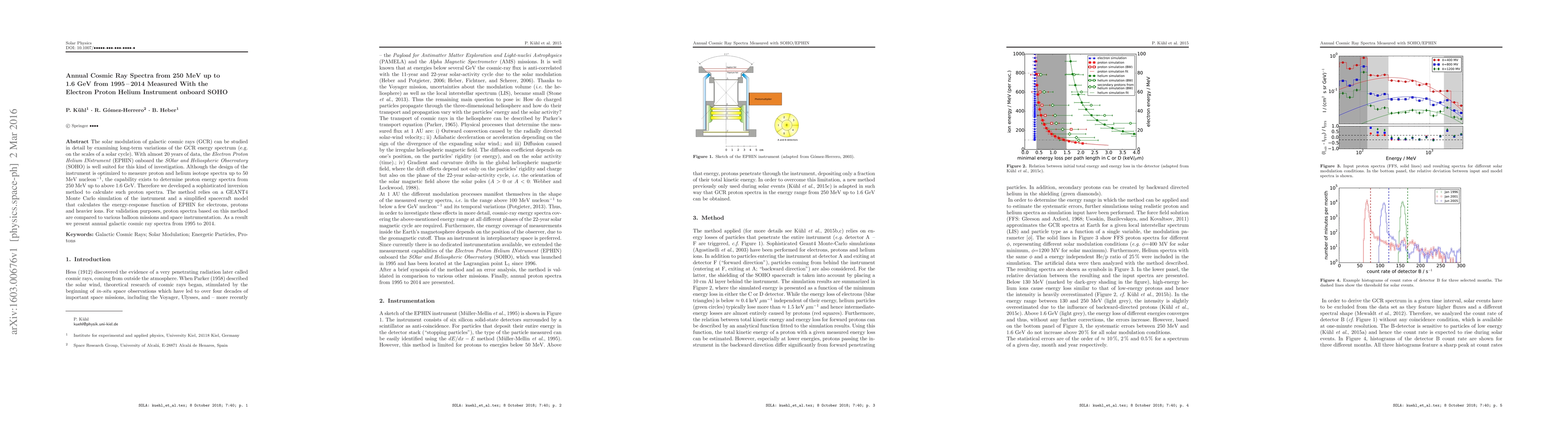 This paper presents annual cosmic ray spectra from 250 MeV to 1.6 GeV measured by the EPHIN instrument on SOHO from 1995 to 2014, using a sophisticated inversion method validated against other space missions. The study provides detailed insights into the solar modulation of galactic cosmic rays over nearly two solar cycles.