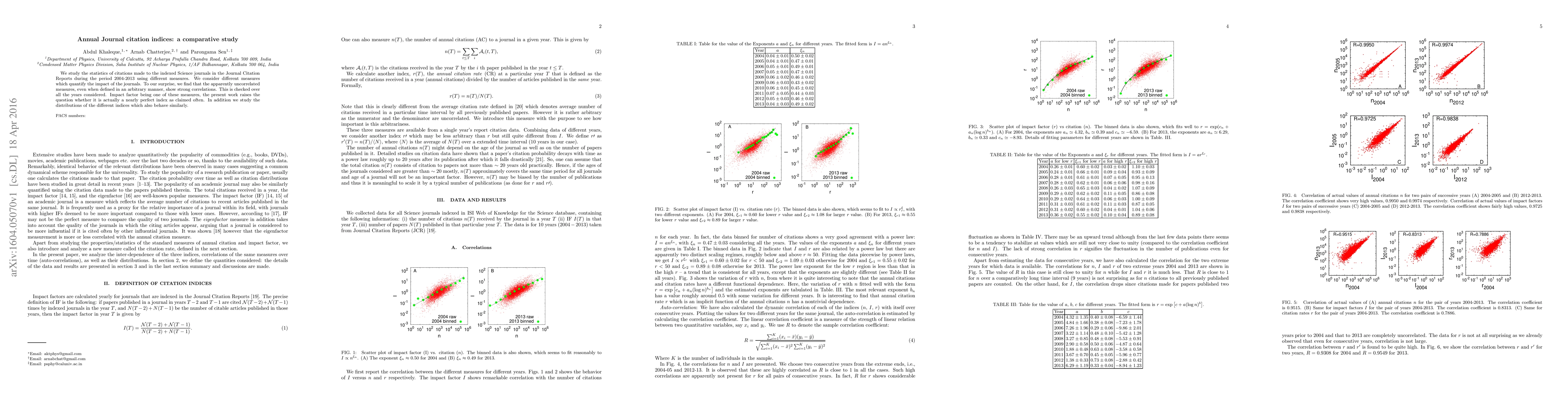 This study compares various citation indices for Science journals in the Journal Citation Reports from 2004-2013, revealing strong correlations among seemingly uncorrelated measures, which challenges the notion of the impact factor as a nearly perfect index. The study also finds similar behaviors in the distributions of these indices.