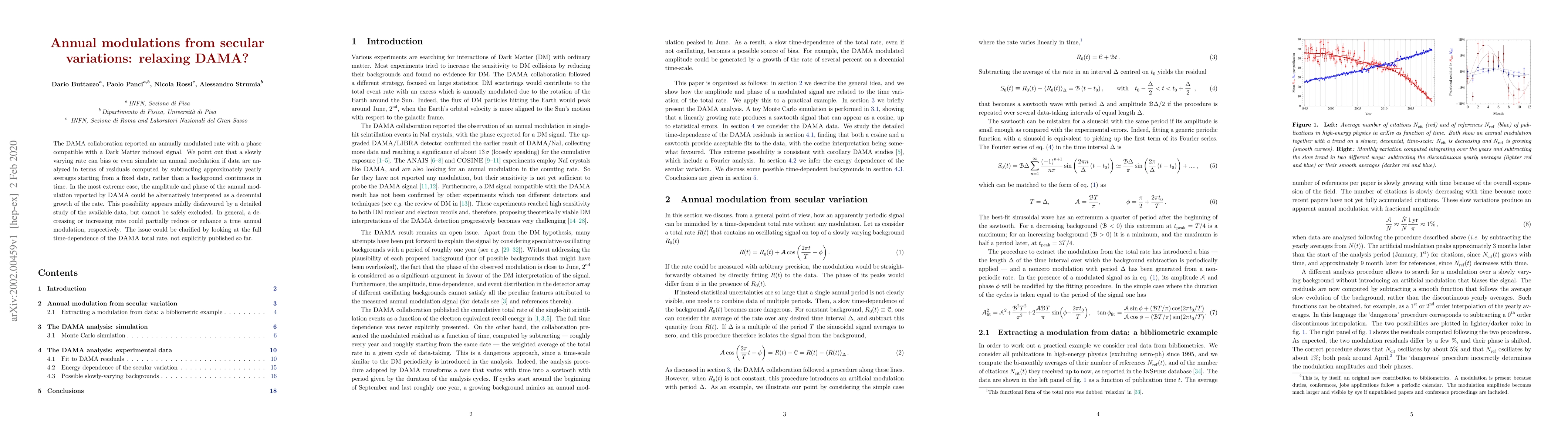 The DAMA collaboration reported an annually modulated rate with a phase compatible with a Dark Matter induced signal. We point out that a slowly varying rate can bias or even simulate an annual modulation if data are analyzed in terms of residuals computed by subtracting approximately yearly averages starting from a fixed date, rather than a background continuous in time. In the most extreme case, the amplitude and phase of the annual modulation reported by DAMA could be alternatively interpreted as a decennial growth of the rate. This possibility appears mildly disfavoured by a detailed study of the available data, but cannot be safely excluded. In general, a decreasing or increasing rate could partially reduce or enhance a true annual modulation, respectively. The issue could be clarified by looking at the full time-dependence of the DAMA total rate, not explicitly published so far.