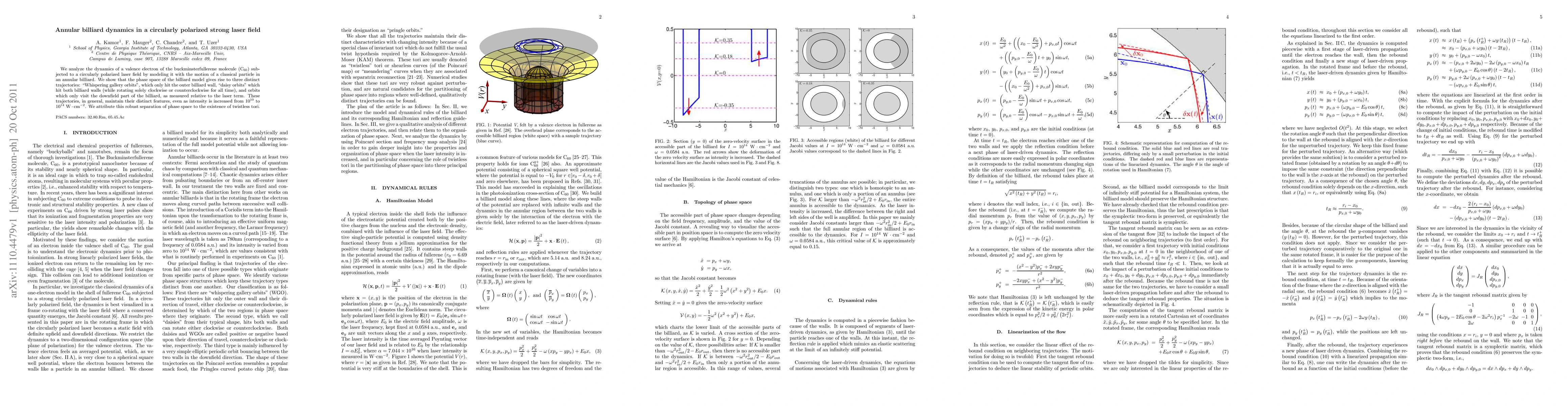 Researchers model a buckminsterfullerene molecule in a circularly polarized laser field using an annular billiard system, revealing three distinct trajectories: Whispering gallery orbits, daisy orbits, and those visiting only the downfield part of the billiard, which remain stable even at high laser intensities.