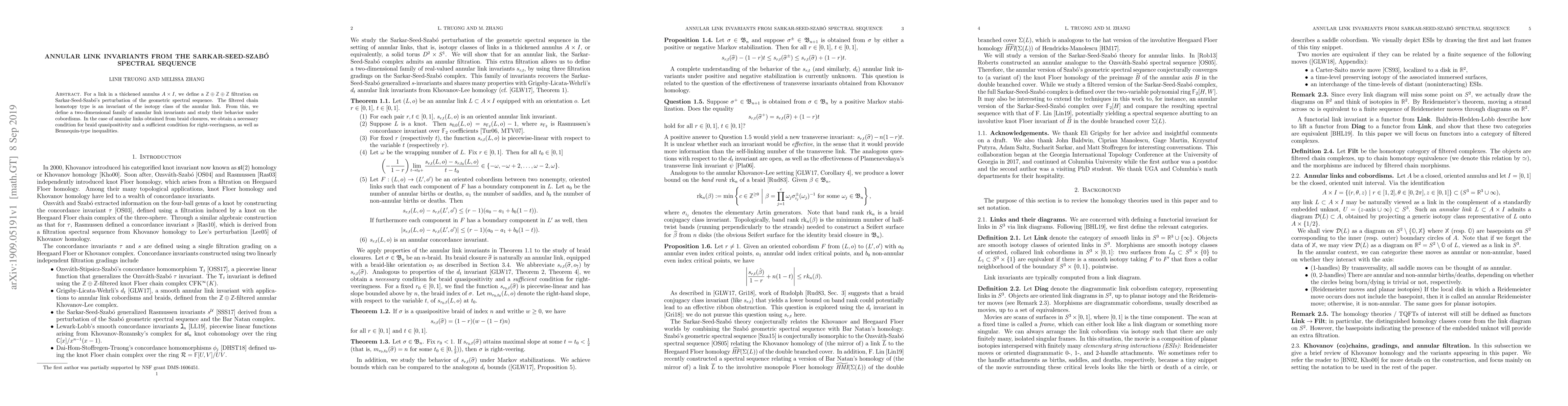 This paper defines a $\mathbb{Z} \oplus \mathbb{Z} \oplus \mathbb{Z}$ filtration on Sarkar-Seed-Szab\'o's spectral sequence for annular links in a thickened annulus, leading to a two-dimensional family of invariants. It explores the invariants' behavior under cobordisms and links them to braid quasipositivity and right-veeringness conditions.