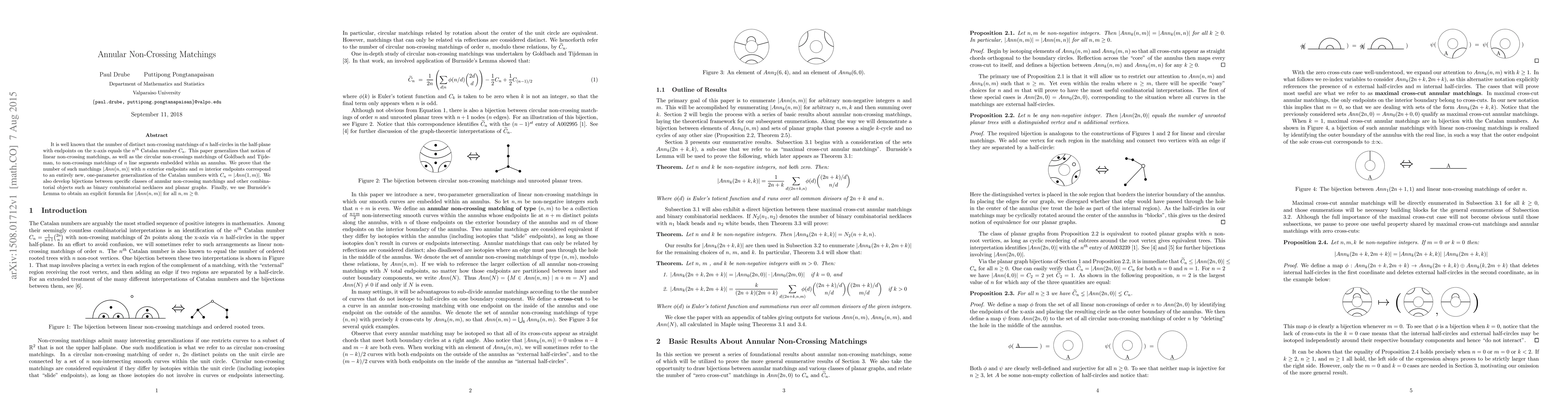 This paper generalizes non-crossing matchings to line segments within an annulus, establishing a new one-parameter generalization of the Catalan numbers. It also develops bijections with binary combinatorial necklaces and planar graphs, and uses Burnside's Lemma to derive an explicit formula for the number of such matchings.