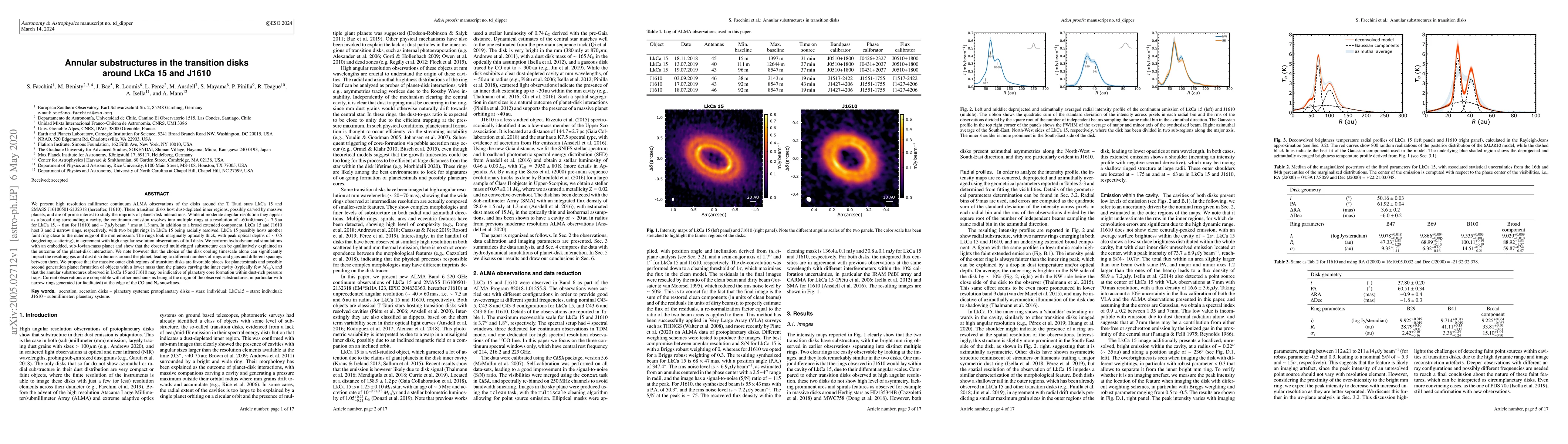 This study uses ALMA observations to reveal multiple ring structures in the transition disks around T Tauri stars LkCa 15 and J1610, suggesting planet-disk interactions. Hydrodynamical simulations indicate that these rings could form due to sub-Jovian-mass planets, though disk cooling timescales significantly affect the resulting structures.