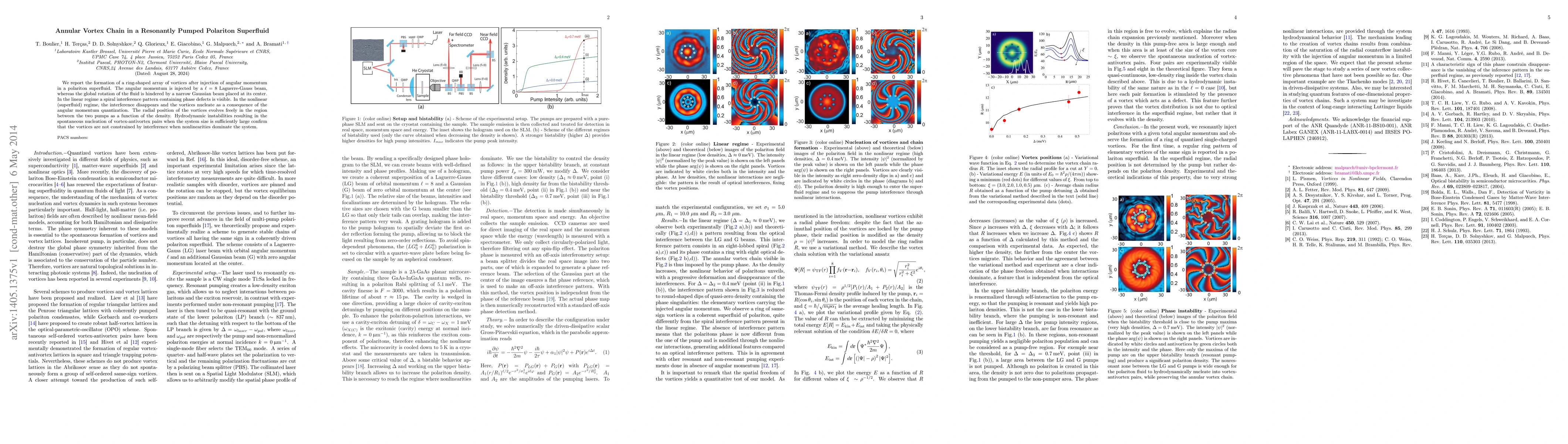 Researchers created a ring-shaped array of vortices in a polariton superfluid by injecting angular momentum with a specific laser beam. The vortices formed freely due to the quantization of angular momentum and were not constrained by interference patterns when nonlinearities dominated.