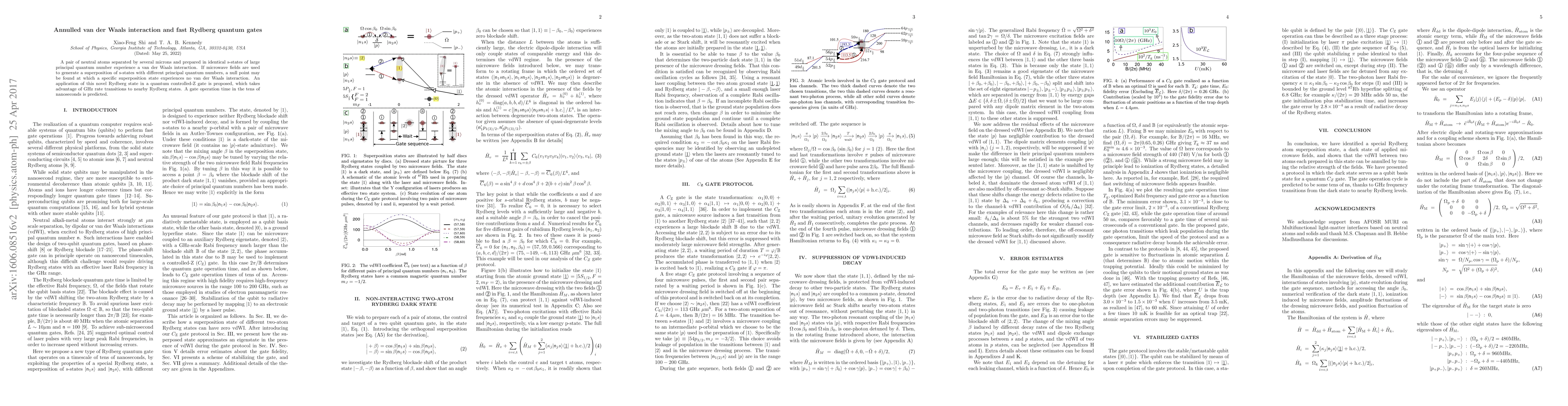 A pair of neutral atoms separated by several microns and prepared in identical s-states of large principal quantum number experience a van der Waals interaction. If microwave fields are used to generate a superposition of s-states with different principal quantum numbers, a null point may be found at which a specific superposition state experiences no van der Waals interaction. An application of this novel Rydberg state in a quantum controlled-Z gate is proposed, which takes advantage of GHz rate transitions to nearby Rydberg states. A gate operation time in the tens of nanoseconds is predicted.