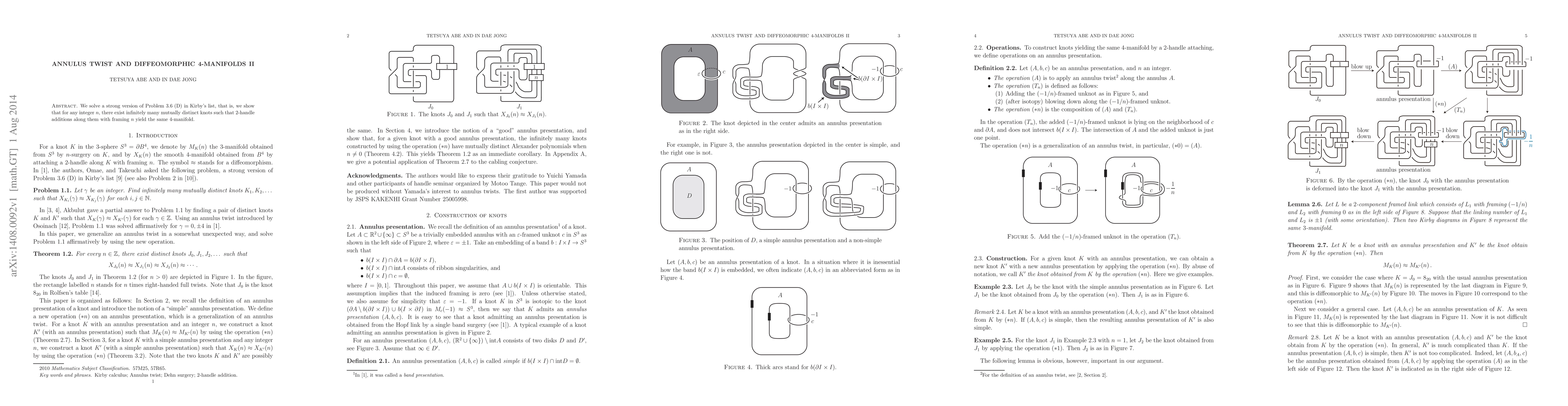 We solve a strong version of Problem 3.6 (D) in Kirby's list, that is, we show that for any integer $n$, there exist infinitely many mutually distinct knots such that $2$-handle additions along them with framing $n$ yield the same $4$-manifold.