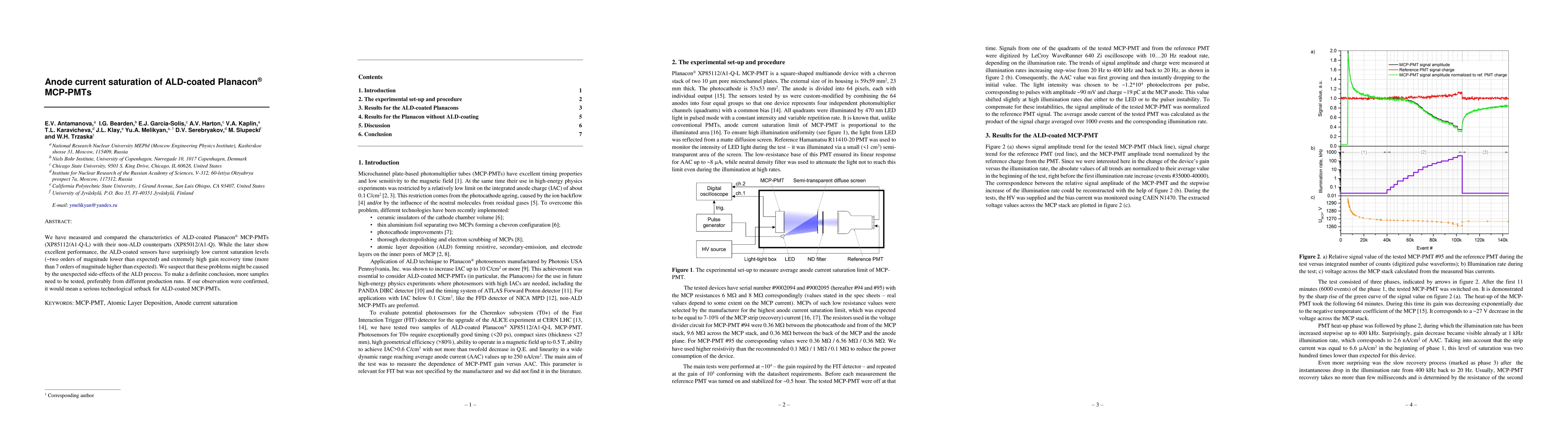 This study investigates the anode current saturation and gain recovery time of ALD-coated Planacon MCP-PMTs, finding significantly lower current saturation and much higher gain recovery time compared to non-ALD counterparts, suggesting potential adverse effects of the ALD process. Further testing across different production runs is needed to confirm these findings.