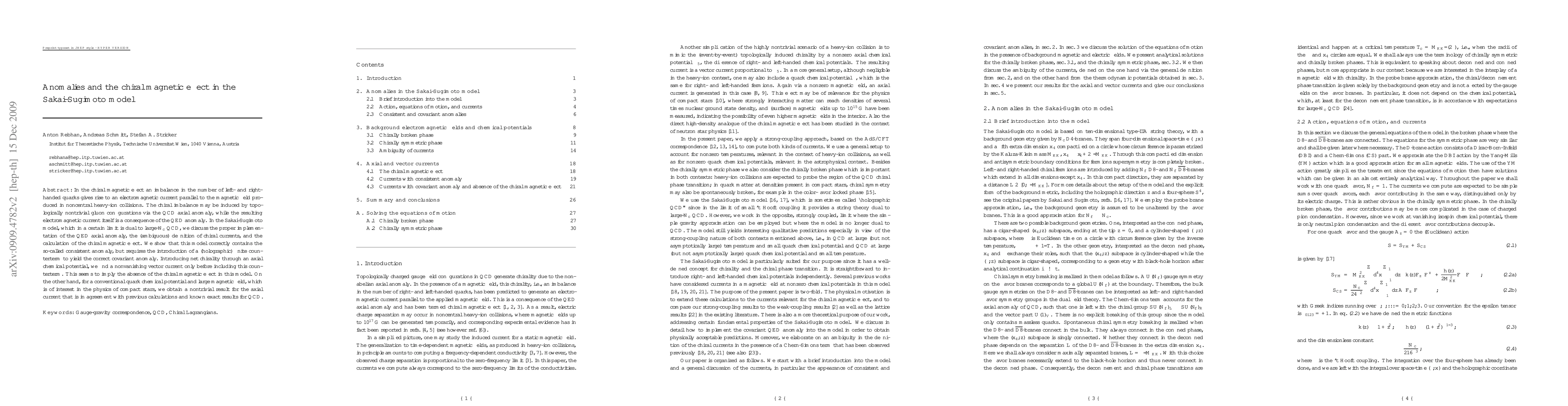 The Sakai-Sugimoto model, which approximates large-N_c QCD, demonstrates the chiral magnetic effect through electromagnetic currents parallel to magnetic fields, but requires a finite counterterm to yield the correct covariant anomaly. Despite this, the model aligns with known QCD results for the axial current in high magnetic fields relevant to compact stars.
