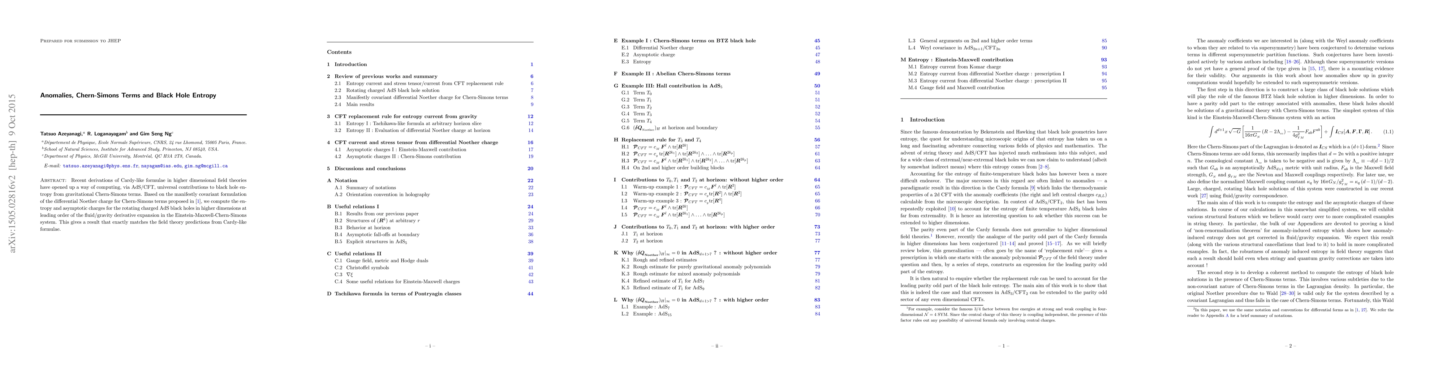 Recent derivations of Cardy-like formulae in higher dimensional field theories have opened up a way of computing, via AdS/CFT, universal contributions to black hole entropy from gravitational Chern-Simons terms. Based on the manifestly covariant formulation of the differential Noether charge for Chern-Simons terms proposed in arXiv:1407.6364, we compute the entropy and asymptotic charges for the rotating charged AdS black holes in higher dimensions at leading order of the fluid/gravity derivative expansion in the Einstein-Maxwell-Chern-Simons system. This gives a result that exactly matches the field theory predictions from Cardy-like formulae.