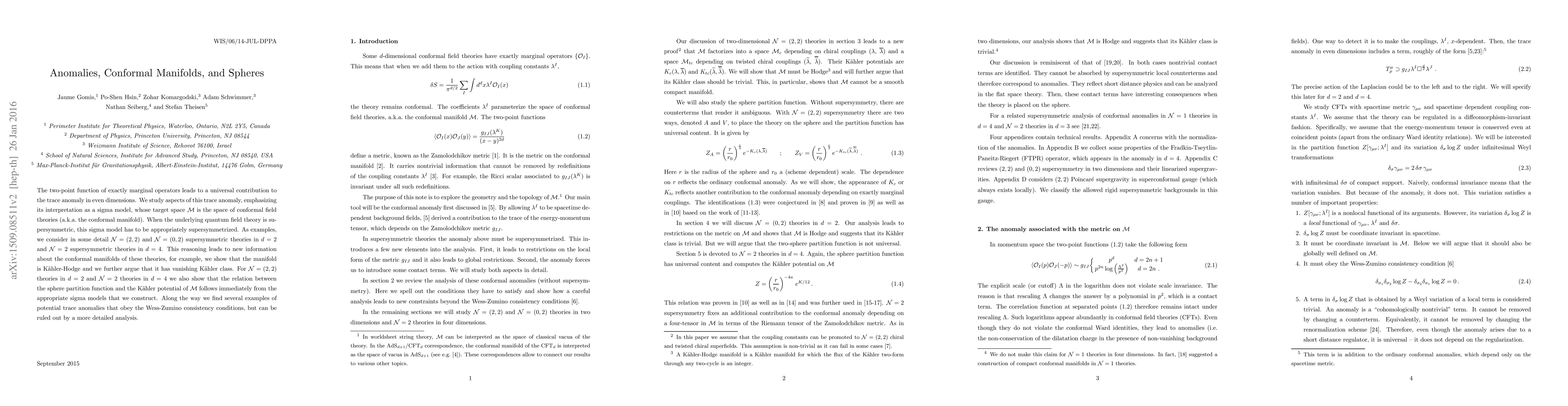 This paper explores the trace anomaly in quantum field theories, interpreting it as a sigma model targeting conformal manifolds. It reveals that the conformal manifolds for specific supersymmetric theories are Kahler-Hodge and have vanishing Kahler class, and establishes a direct relationship between sphere partition functions and the Kahler potential.