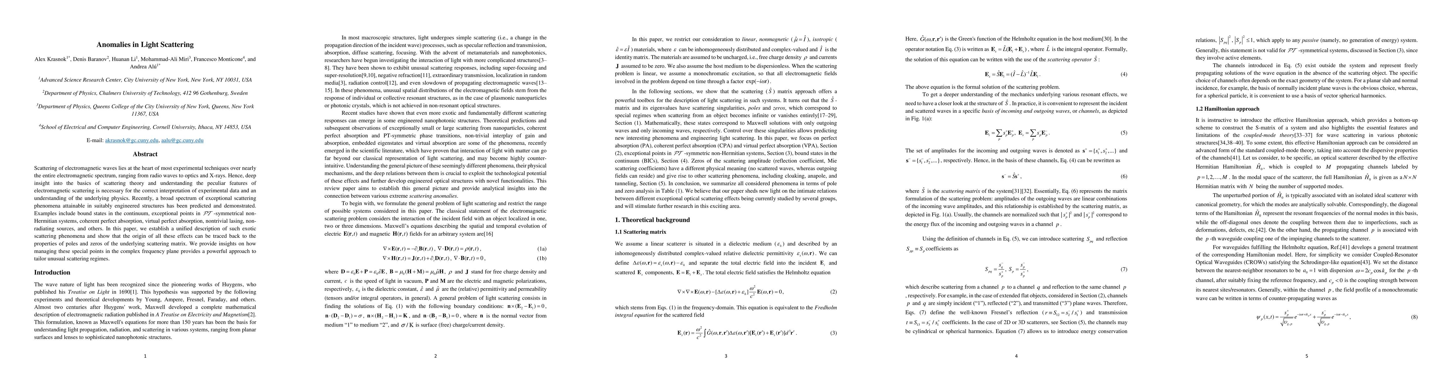Scattering of electromagnetic waves lies at the heart of most experimental techniques over nearly the entire electromagnetic spectrum, ranging from radio waves to optics and X-rays. Hence, deep insight into the basics of scattering theory and understanding the peculiar features of electromagnetic scattering is necessary for the correct interpretation of experimental data and an understanding of the underlying physics. Recently, a broad spectrum of exceptional scattering phenomena attainable in suitably engineered structures has been predicted and demonstrated. Examples include bound states in the continuum, exceptional points in PT-symmetrical non-Hermitian systems, coherent perfect absorption, virtual perfect absorption, nontrivial lasing, non-radiating sources, and others. In this paper, we establish a unified description of such exotic scattering phenomena and show that the origin of all these effects can be traced back to the properties of poles and zeros of the underlying scattering matrix. We provide insights on how managing these special points in the complex frequency plane provides a powerful approach to tailor unusual scattering regimes.
