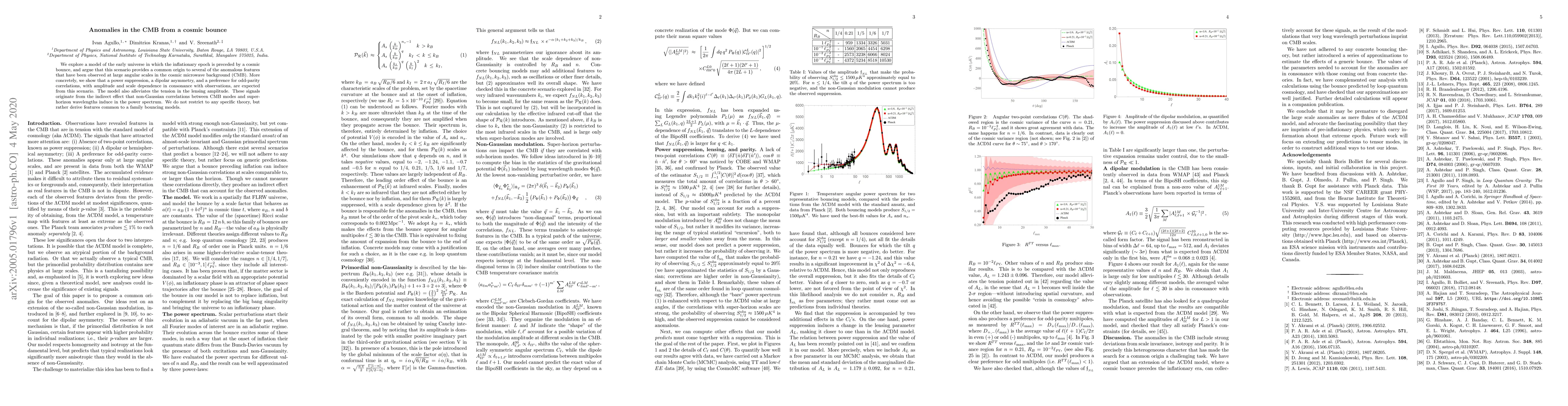 This paper investigates a cosmic bounce model preceding inflation, suggesting it can explain anomalies in the CMB, including power suppression, dipolar asymmetry, and odd-parity correlations. The model also resolves the tension in the lensing amplitude, attributing these features to non-Gaussian correlations between CMB modes.