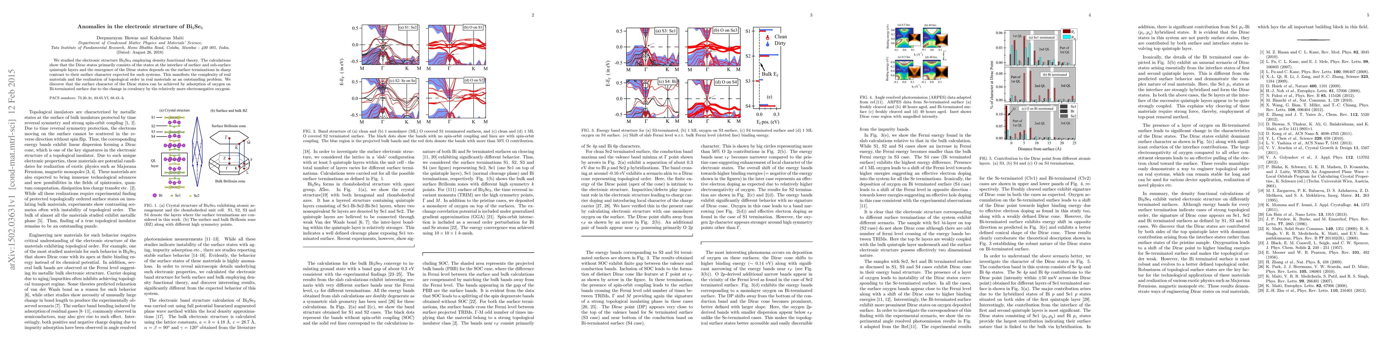 Researchers used density functional theory to study Bi2Se3 and found that its Dirac states are influenced by surface terminations and adsorption of oxygen, revealing the complexity of real materials.