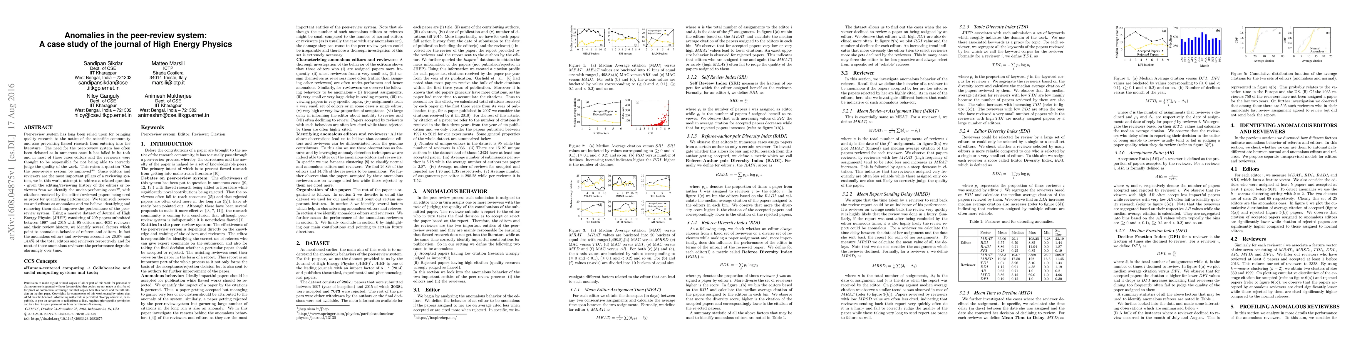 Peer-review system has long been relied upon for bringing quality research to the notice of the scientific community and also preventing flawed research from entering into the literature. The need for the peer-review system has often been debated as in numerous cases it has failed in its task and in most of these cases editors and the reviewers were thought to be responsible for not being able to correctly judge the quality of the work. This raises a question "Can the peer-review system be improved?" Since editors and reviewers are the most important pillars of a reviewing system, we in this work, attempt to address a related question - given the editing/reviewing history of the editors or re- viewers "can we identify the under-performing ones?", with citations received by the edited/reviewed papers being used as proxy for quantifying performance. We term such review- ers and editors as anomalous and we believe identifying and removing them shall improve the performance of the peer- review system. Using a massive dataset of Journal of High Energy Physics (JHEP) consisting of 29k papers submitted between 1997 and 2015 with 95 editors and 4035 reviewers and their review history, we identify several factors which point to anomalous behavior of referees and editors. In fact the anomalous editors and reviewers account for 26.8% and 14.5% of the total editors and reviewers respectively and for most of these anomalous reviewers the performance degrades alarmingly over time.