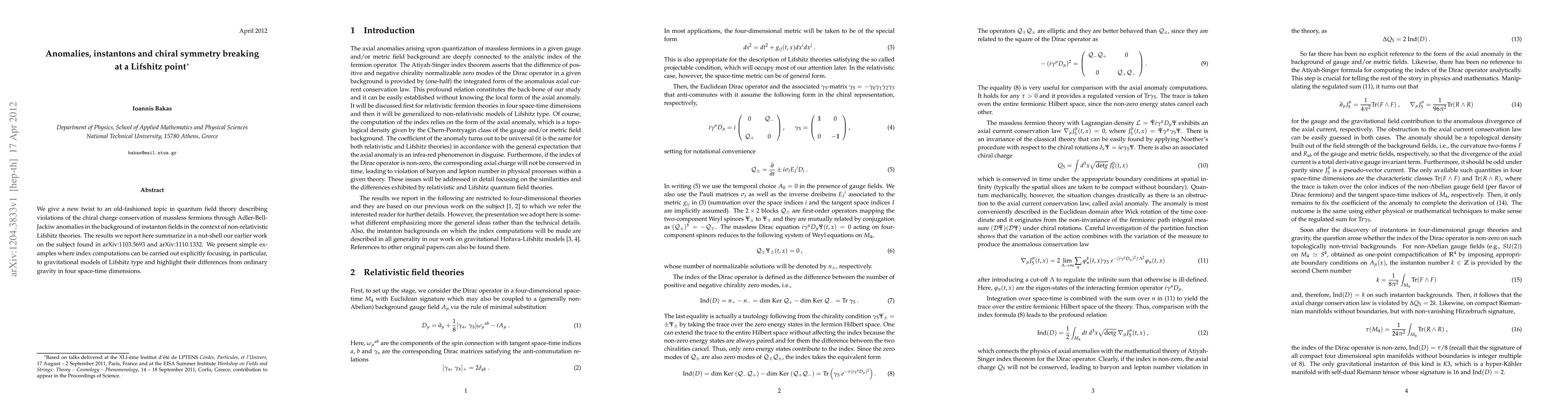 Researchers investigate anomalies in quantum field theory at Lifshitz points, a mathematical concept that combines non-relativistic gravity with chiral symmetry breaking, highlighting potential differences from ordinary gravity in four dimensions.