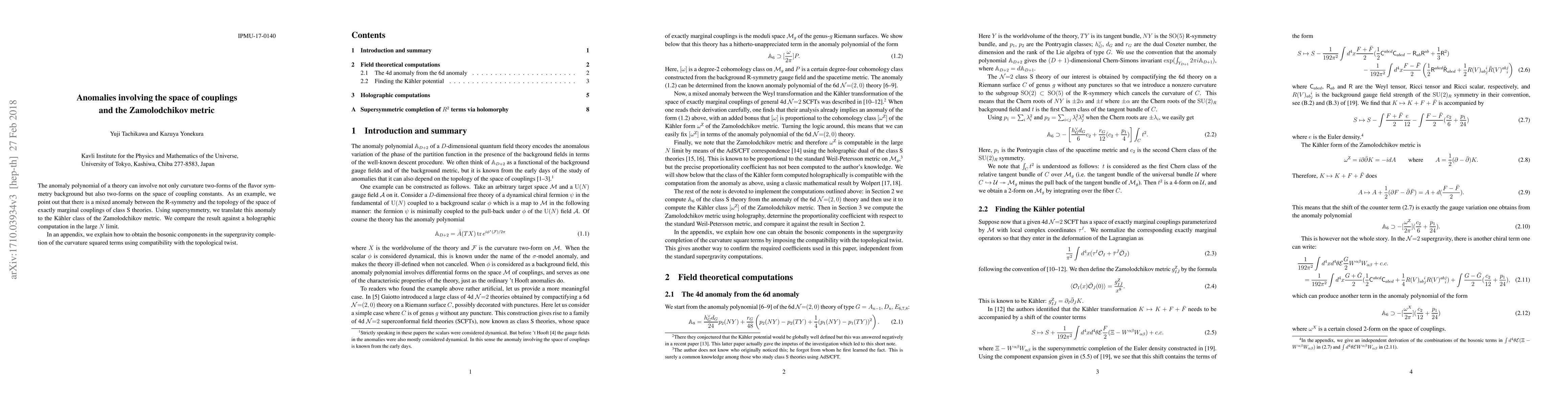 The anomaly polynomial of a theory can involve not only curvature two-forms of the flavor symmetry background but also two-forms on the space of coupling constants. As an example, we point out that there is a mixed anomaly between the R-symmetry and the topology of the space of exactly marginal couplings of class S theories. Using supersymmetry, we translate this anomaly to the K\"ahler class of the Zamolodchikov metric. We compare the result against a holographic computation in the large N limit. In an appendix, we explain how to obtain the bosonic components in the supergravity completion of the curvature squared terms using compatibility with the topological twist.