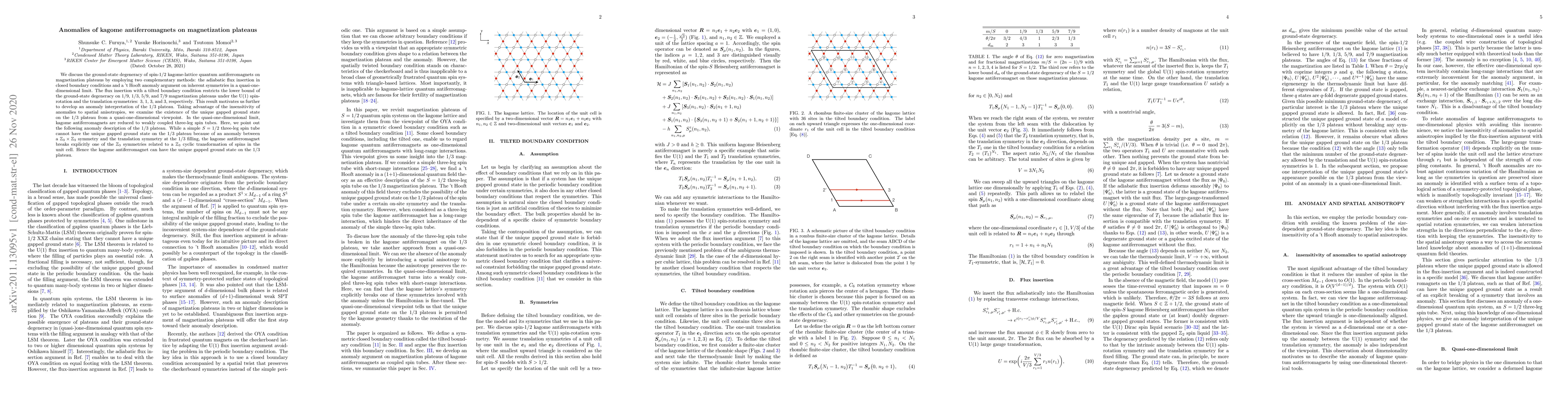 We discuss the ground-state degeneracy of spin-$1/2$ kagome-lattice quantum antiferromagnets on magnetization plateaus by employing two complementary methods: the adiabatic flux insertion in closed boundary conditions and a 't Hooft anomaly argument on inherent symmetries in a quasi-one-dimensional limit. The flux insertion with a tilted boundary condition restricts the lower bound of the ground-state degeneracy on $1/9$, $1/3$, $5/9$, and $7/9$ magnetization plateaus under the $\mathrm{U(1)}$ spin-rotation and the translation symmetries: $3$, $1$, $3$, and $3$, respectively. This result motivates us further to develop an anomaly interpretation of the $1/3$ plateau. Taking advantage of the insensitivity of anomalies to spatial anisotropies, we examine the existence of the unique gapped ground state on the $1/3$ plateau from a quasi-one-dimensional viewpoint. In the quasi-one-dimensional limit, kagome antiferromagnets are reduced to weakly coupled three-leg spin tubes. Here, we point out the following anomaly description of the $1/3$ plateau. While a simple $S=1/2$ three-leg spin tube cannot have the unique gapped ground state on the $1/3$ plateau because of an anomaly between a $\mathbb Z_3\times \mathbb Z_3$ symmetry and the translation symmetry at the $1/3$ filling, the kagome antiferromagnet breaks explicitly one of the $\mathbb Z_3$ symmetries related to a $\mathbb Z_3$ cyclic transformation of spins in the unit cell. Hence the kagome antiferromagnet can have the unique gapped ground state on the $1/3$ plateau.
