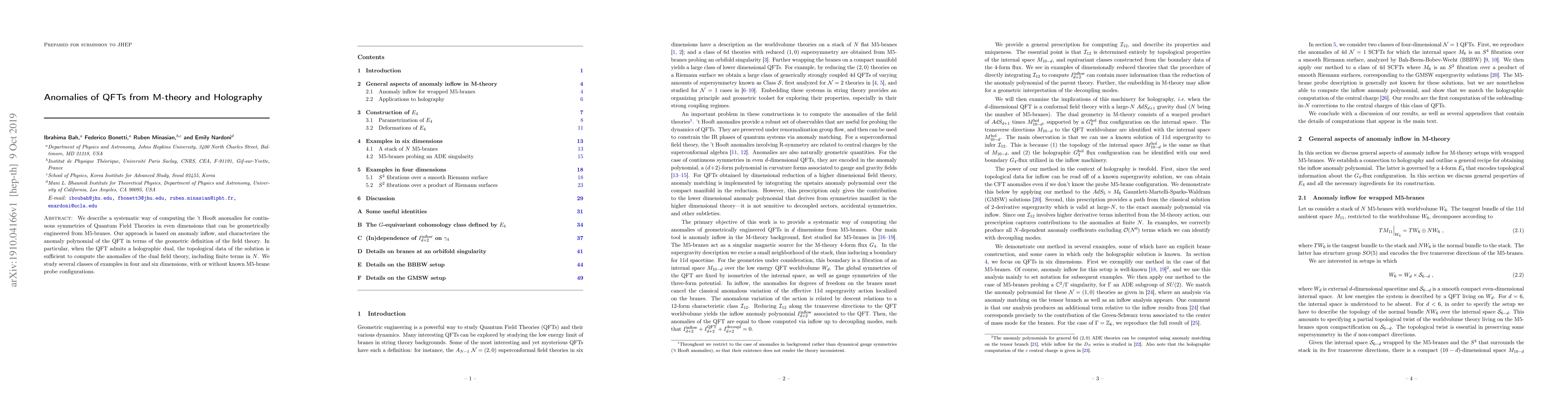 Researchers describe a method to compute anomalies in quantum field theories (QFTs) from M-theory and holography, enabling the calculation of 't Hooft anomalies for continuous symmetries in even dimensions.