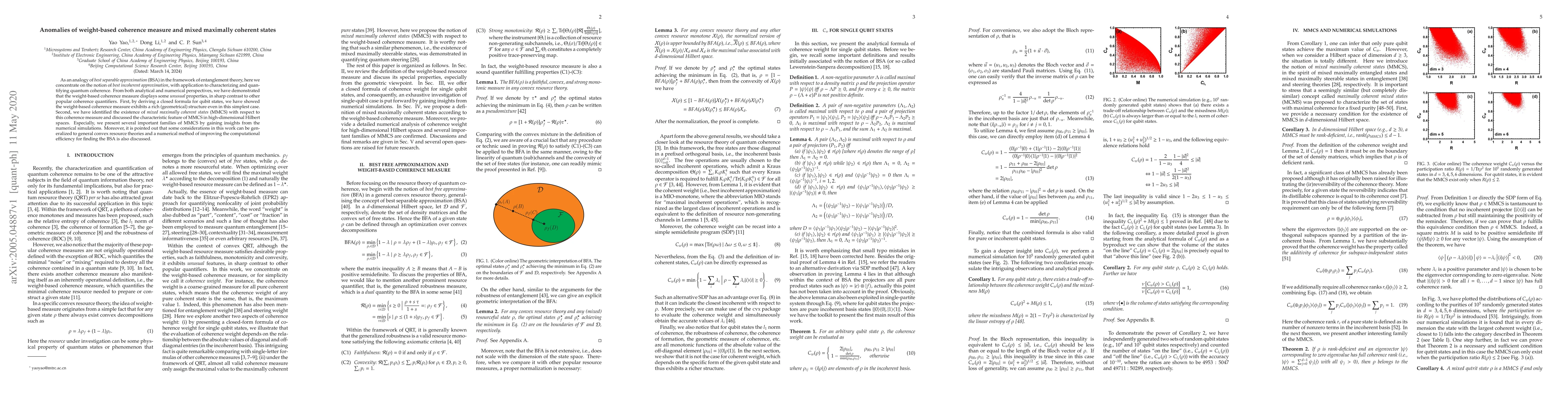 As an analogy of best separable approximation (BSA) in the framework of entanglement theory, here we concentrate on the notion of best incoherent approximation, with application to characterizing and quantifying quantum coherence. From both analytical and numerical perspectives, we have demonstrated that the weight-based coherence measure displays some unusual properties, in sharp contrast to other popular coherence quantifiers. First, by deriving a closed formula for qubit states, we have showed the weight-based coherence measure exhibits a rich (geometrical) structure even in this simplest case. Second, we have identified the existence of mixed maximally coherent states (MMCS) with respect to this coherence measure and discussed the characteristic feature of MMCS in high-dimensional Hilbert spaces. Especially, we present several important families of MMCS by gaining insights from the numerical simulations. Moreover, it is pointed out that some considerations in this work can be generalized to general convex resource theories and a numerical method of improving the computational efficiency for finding the BSA is also discussed.