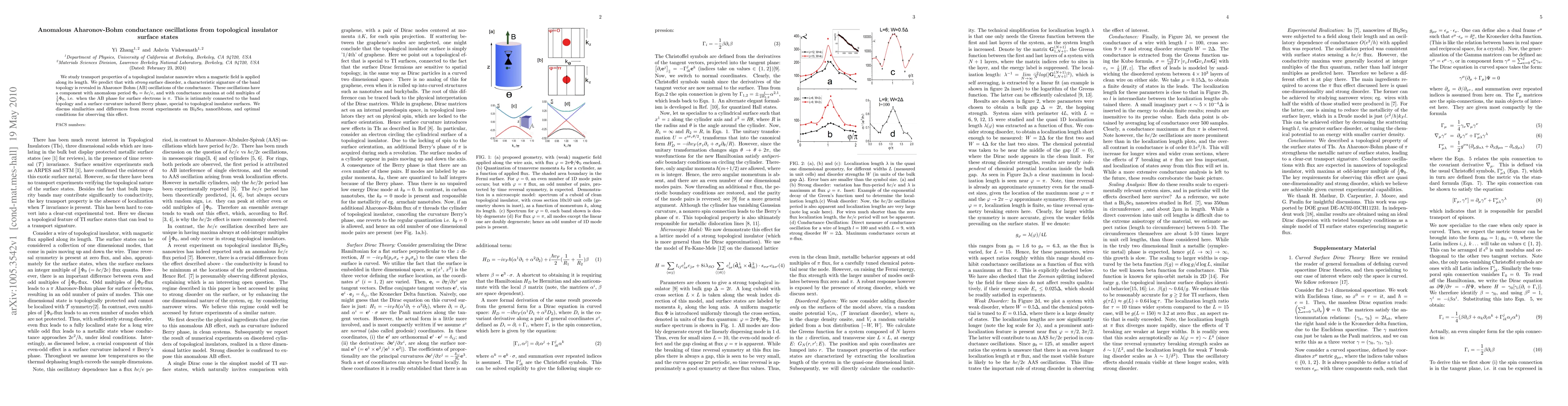 The paper explores the transport properties of topological insulator nanowires under a magnetic field, predicting anomalous Aharonov-Bohm conductance oscillations due to topological surface states, characterized by an oscillatory period of $\Phi_0=hc/e$ and conductance peaks at odd multiples of $\frac12\Phi_0$. These oscillations stem from the unique band topology and curvature-induced Berry phase of topological insulator surfaces.