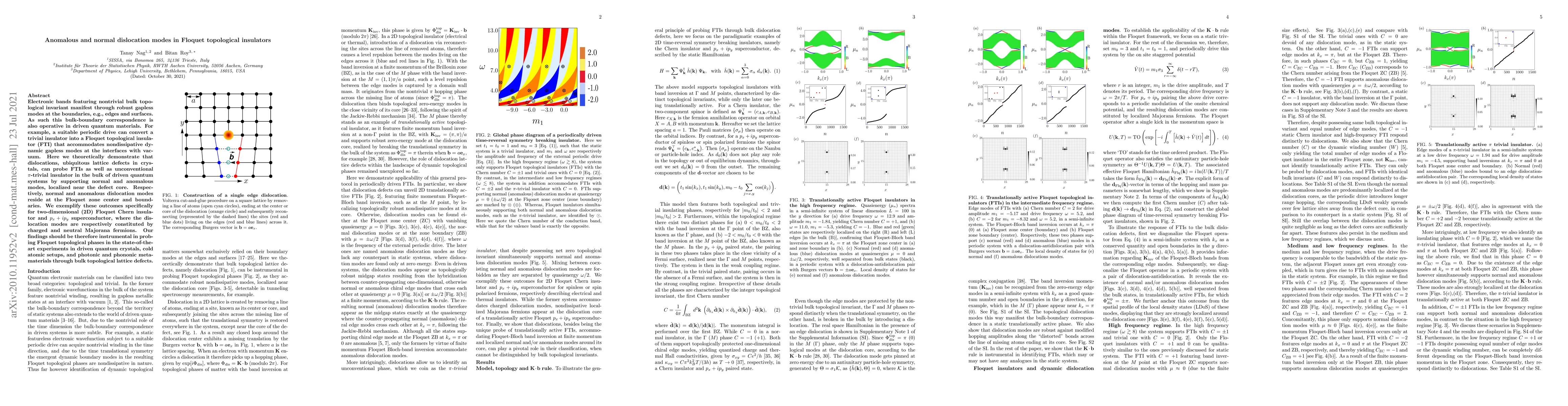 This paper theoretically demonstrates that dislocations in driven quantum materials can reveal topological properties by supporting normal and anomalous modes, specifically in 2D Floquet Chern insulators and $p_x+ip_y$ superconductors, where these modes are composed of charged and neutral Majorana fermions, respectively. These findings provide a new method for probing topological phases in driven quantum systems.