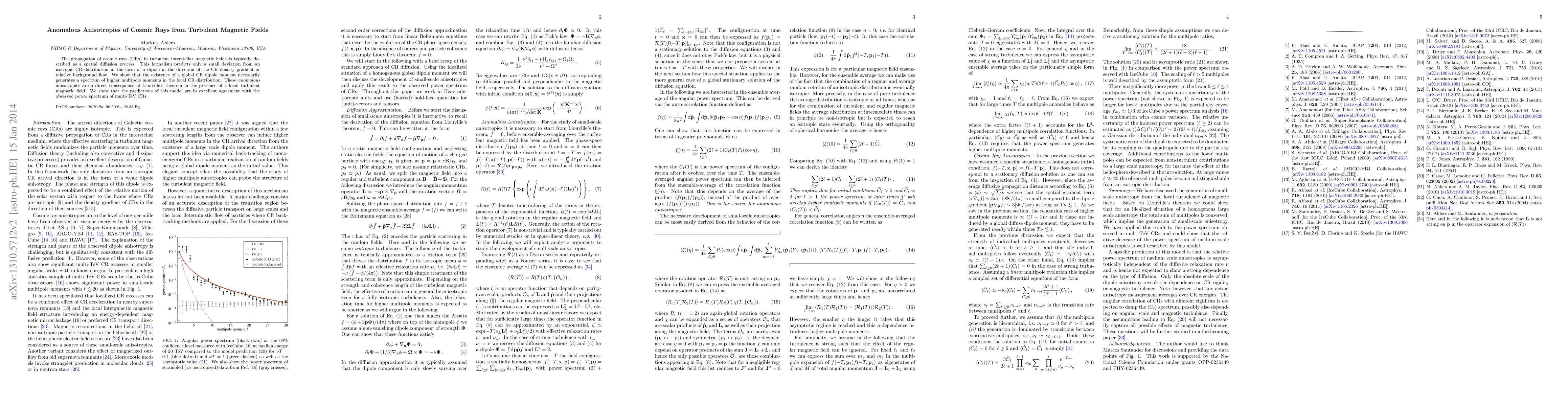 This paper demonstrates that cosmic rays in turbulent magnetic fields exhibit "anomalous" anisotropies, generating higher multipole moments beyond the expected dipole, due to Liouville's theorem. The model's predictions align well with observed multi-TeV cosmic ray distributions.