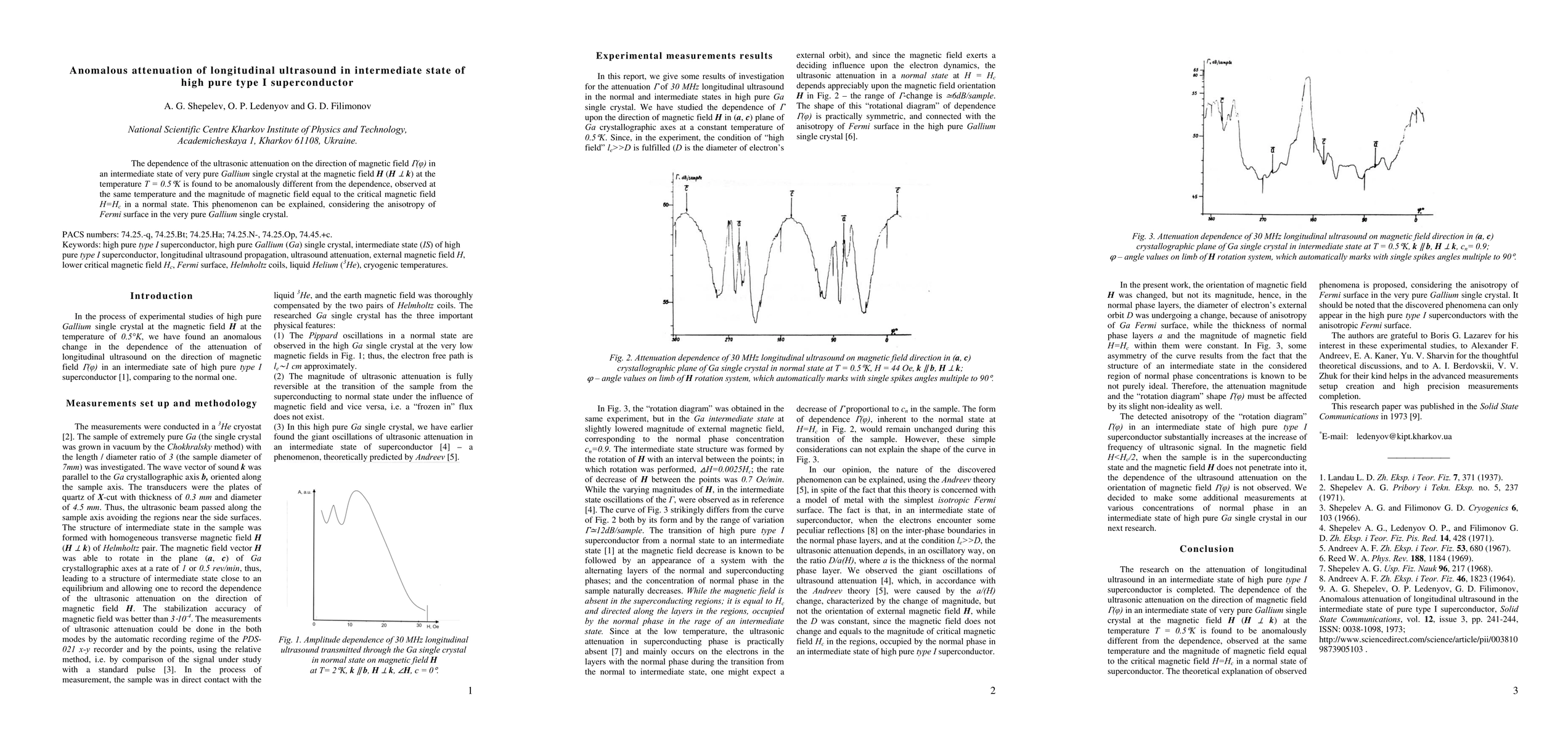 The dependence of the ultrasonic attenuation on the direction of magnetic field in an intermediate state of the very pure Gallium single crystal, in the case, when the magnetic field H is perpendicular to the wave vector k at the temperature T = 0.5 K, is found to be anomalously different from the dependence, observed at the same temperature and the magnitude of magnetic field equal to the critical magnetic field H=Hc in a normal state of superconductor. This new phenomenon can be explained, considering the anisotropy of the Fermi surface in the very pure Gallium single crystal.