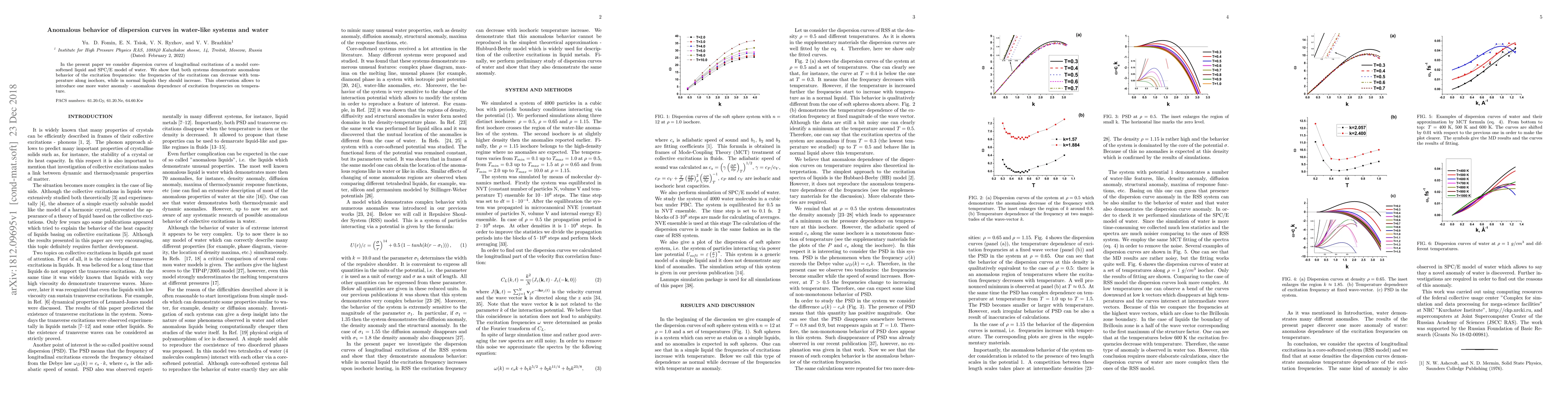 In the present paper we consider dispersion curves of longitudinal excitations of a model core-softened liquid and SPC/E model of water. We show that both systems demonstrate anomalous behavior of the excitation frequencies: the frequencies of the excitations can decrease with temperature along isochors, while in normal liquids they should increase. This observation allows to introduce one more water anomaly - anomalous dependence of excitation frequencies on temperature.