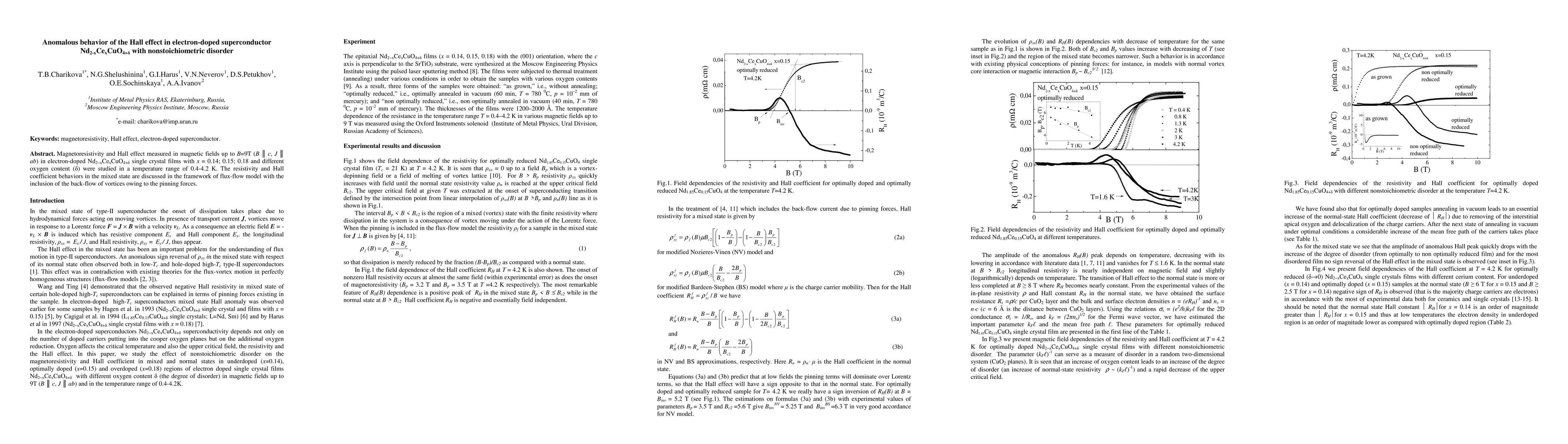 Magnetoresistivity and Hall effect measured in magnetic fields up to B=9T (B||c, J||ab) in electron-doped $Nd_{2-x}$Ce_{x}Cu$O_{4+{\delta}} single crystal films with x = 0.14; 0.15; 0.18 and different oxygen content ({\delta}) were studied in a temperature range of 0.4-4.2 K. The resistivity and Hall coefficient behaviors in the mixed state are discussed in the framework of flux-flow model with the inclusion of the back-flow of vortices owing to the pinning forces.