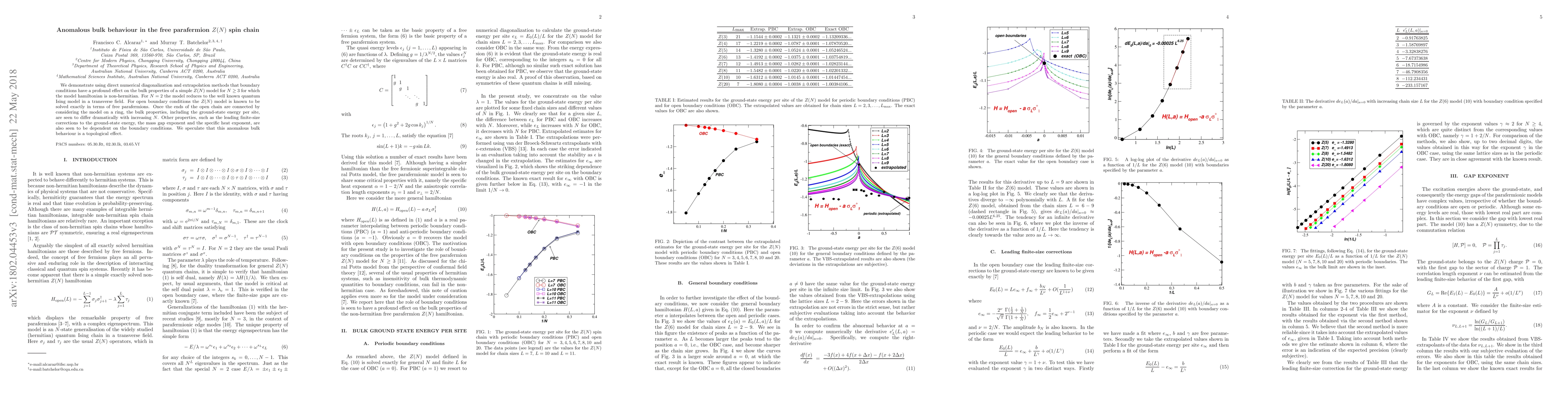 We demonstrate using direct numerical diagonalization and extrapolation methods that boundary conditions have a profound effect on the bulk properties of a simple $Z(N)$ model for $N \ge 3$ for which the model hamiltonian is non-hermitian. For $N=2$ the model reduces to the well known quantum Ising model in a transverse field. For open boundary conditions the $Z(N)$ model is known to be solved exactly in terms of free parafermions. Once the ends of the open chain are connected by considering the model on a ring, the bulk properties, including the ground-state energy per site, are seen to differ dramatically with increasing $N$. Other properties, such as the leading finite-size corrections to the ground-state energy, the mass gap exponent and the specific heat exponent, are also seen to be dependent on the boundary conditions. We speculate that this anomalous bulk behaviour is a topological effect.