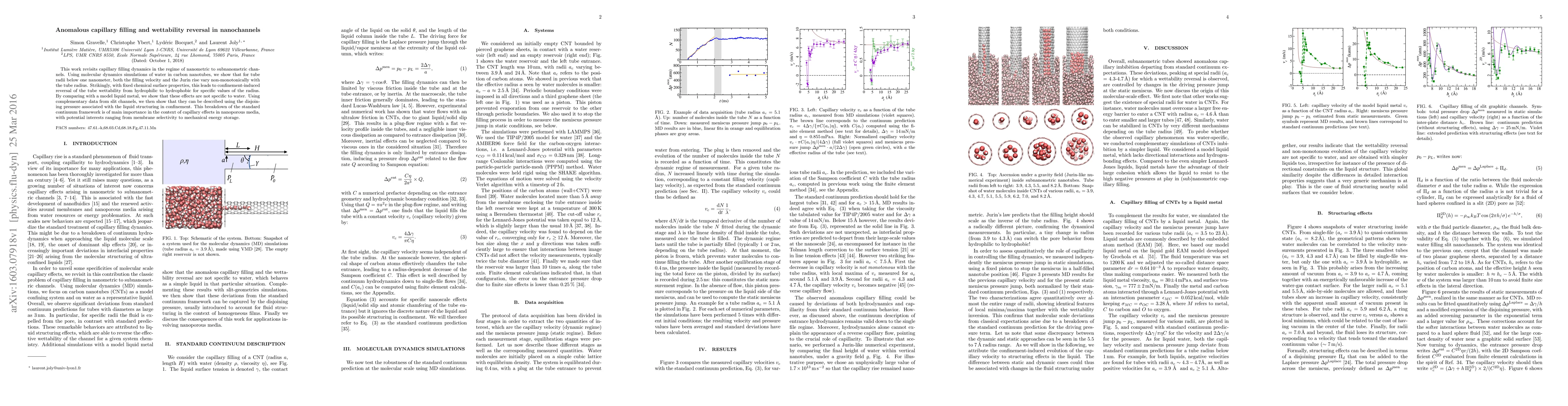 This paper demonstrates anomalous capillary filling in nanochannels, showing that wettability can reverse from hydrophilic to hydrophobic due to confinement effects, using molecular dynamics simulations and comparing results with liquid metals. The findings challenge conventional continuum models and have implications for nanotechnology applications.