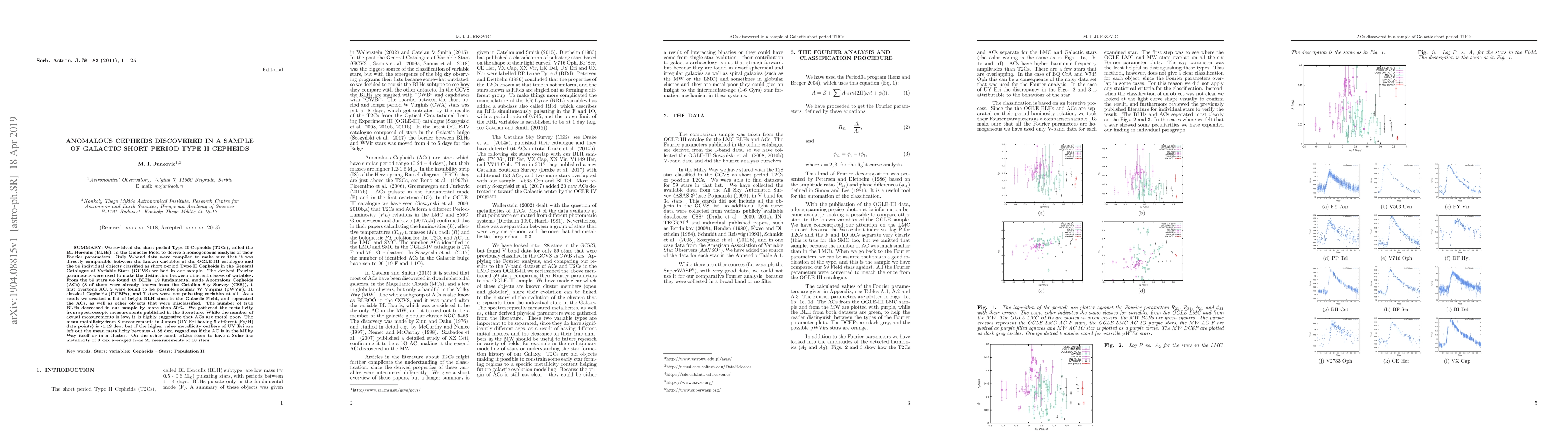 Researchers discovered 19 anomalous Cepheids in the Galactic Field, finding that most are metal-poor, unlike previously thought BL Herculis stars, which have a Solar-like metallicity.