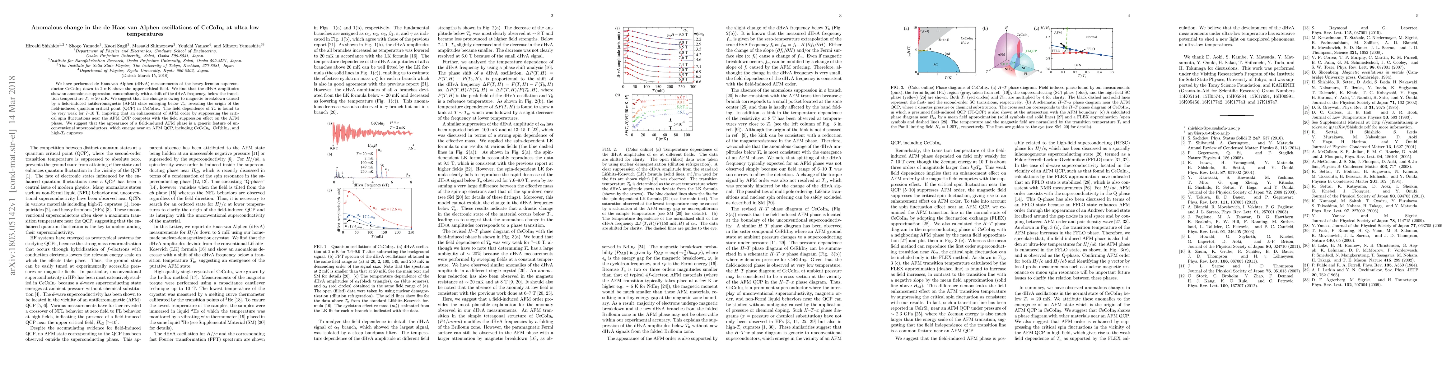 This paper reports on anomalous changes in de Haas-van Alphen oscillations in CeCoIn$_5$ at ultra-low temperatures, revealing a suppression of dHvA amplitudes and a shift in frequency below the transition temperature, attributed to a field-induced antiferromagnetic state. This suggests the emergence of a field-induced quantum critical point and hints at a generic feature of unconventional superconductors near an AFM quantum critical point.