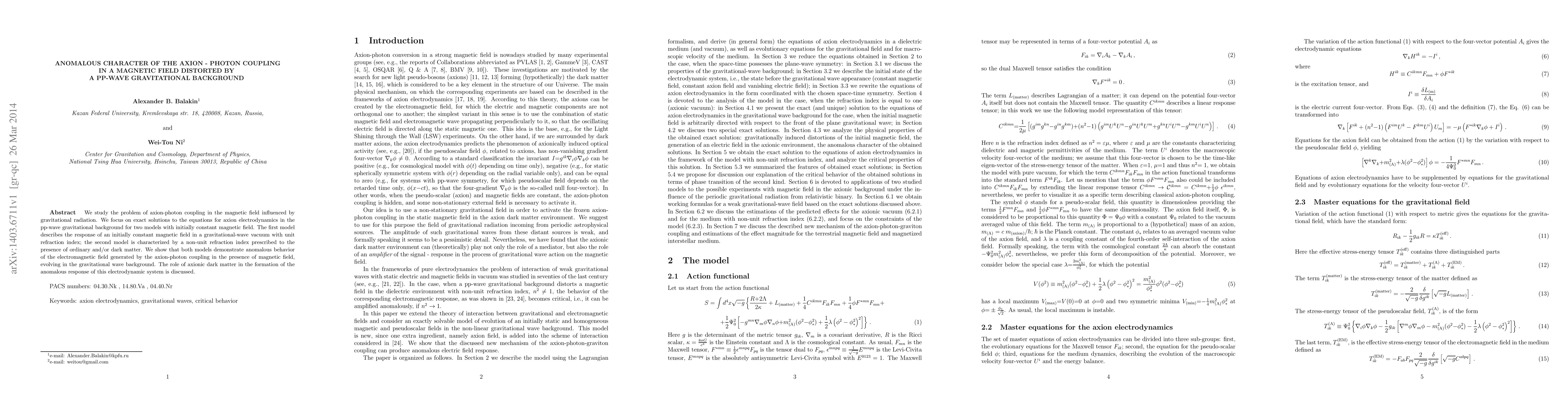 This paper investigates the anomalous behavior of axion-photon coupling in magnetic fields influenced by pp-wave gravitational backgrounds, revealing unique electromagnetic responses in two models differing by refraction index, with a focus on the role of axion dark matter.