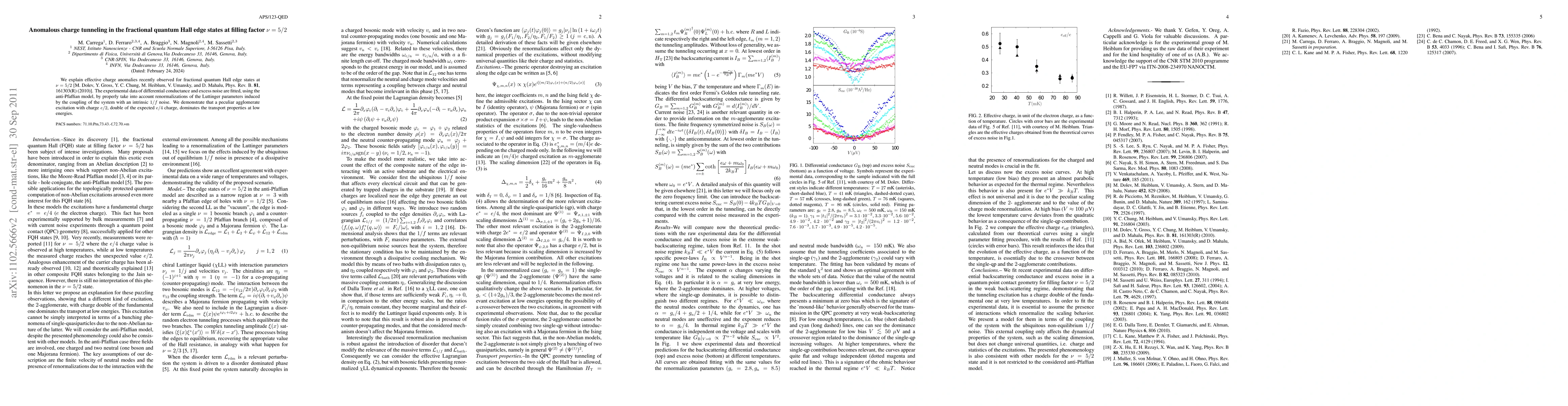 We explain effective charge anomalies recently observed for fractional quantum Hall edge states at $\nu=5/2$ [M. Dolev, Y. Gross, Y. C. Chung, M. Heiblum, V. Umansky, and D. Mahalu, Phys.Rev. B. \textbf{81}, 161303(R) (2010)]. The experimental data of differential conductance and excess noise are fitted, using the anti-Pfaffian model, by properly take into account renormalizations of the Luttinger parameters induced by the coupling of the system with an intrinsic $1/f$ noise. We demonstrate that a peculiar agglomerate excitation with charge $e/2$, double of the expected $e/4$ charge, dominates the transport properties at low energies.