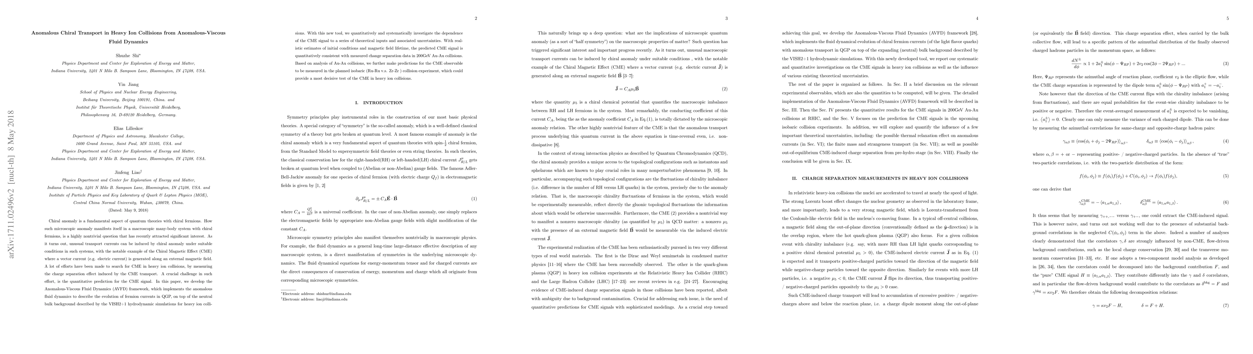 Chiral anomaly is a fundamental aspect of quantum theories with chiral fermions. How such microscopic anomaly manifests itself in a macroscopic many-body system with chiral fermions, is a highly nontrivial question that has recently attracted significant interest. As it turns out, unusual transport currents can be induced by chiral anomaly under suitable conditions in such systems, with the notable example of the Chiral Magnetic Effect (CME) where a vector current (e.g. electric current) is generated along an external magnetic field. A lot of efforts have been made to search for CME in heavy ion collisions, by measuring the charge separation effect induced by the CME transport. A crucial challenge in such effort, is the quantitative prediction for the CME signal. In this paper, we develop the Anomalous-Viscous Fluid Dynamics (AVFD) framework, which implements the anomalous fluid dynamics to describe the evolution of fermion currents in QGP, on top of the neutral bulk background described by the VISH2+1 hydrodynamic simulations for heavy ion collisions. With this new tool, we quantitatively and systematically investigate the dependence of the CME signal to a series of theoretical inputs and associated uncertainties. With realistic estimates of initial conditions and magnetic field lifetime, the predicted CME signal is quantitatively consistent with measured change separation data in 200GeV Au-Au collisions. Based on analysis of Au-Au collisions, we further make predictions for the CME observable to be measured in the planned isobaric (Ru-Ru v.s. Zr-Zr ) collision experiment, which could provide a most decisive test of the CME in heavy ion collisions.