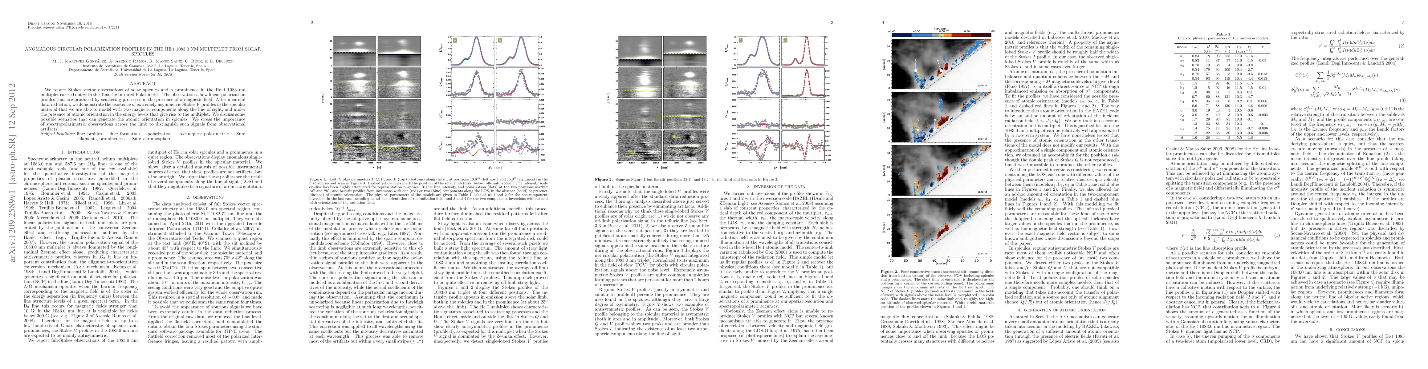This paper reports on the detection of anomalous circular polarization profiles in solar spicules using the Tenerife Infrared Polarimeter, revealing asymmetric Stokes V profiles modeled by two magnetic components and atomic orientation effects. The study emphasizes the need for spectropolarimetric observations to differentiate these signals from artifacts.