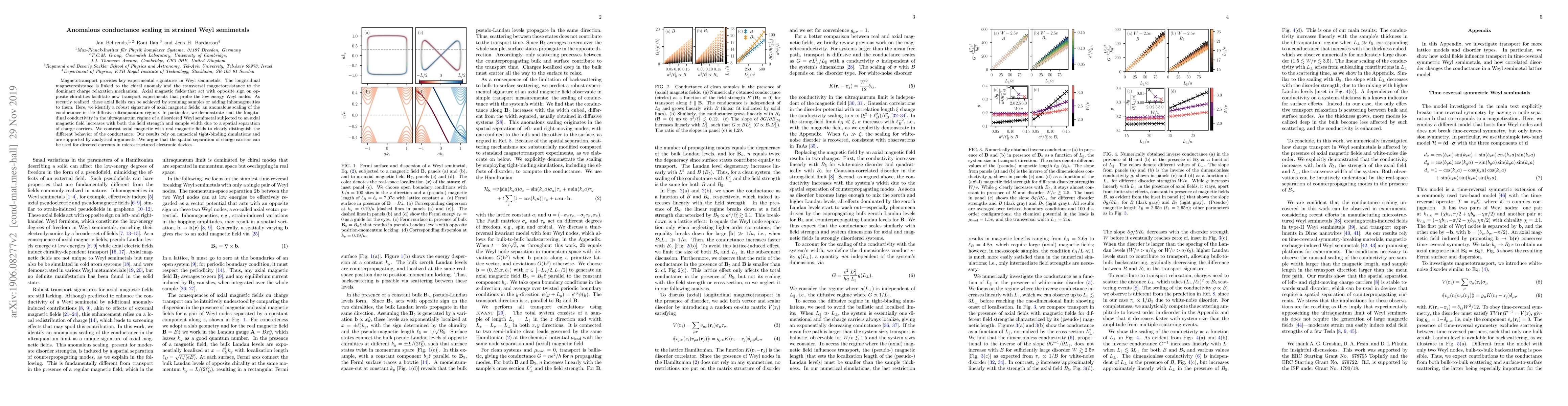 This paper investigates anomalous conductance scaling in strained Weyl semimetals, revealing that longitudinal conductivity increases with both axial magnetic field strength and sample width, due to spatial separation of charge carriers. The findings distinguish axial magnetic effects from real magnetic fields and suggest potential applications in microstructured electronic devices.