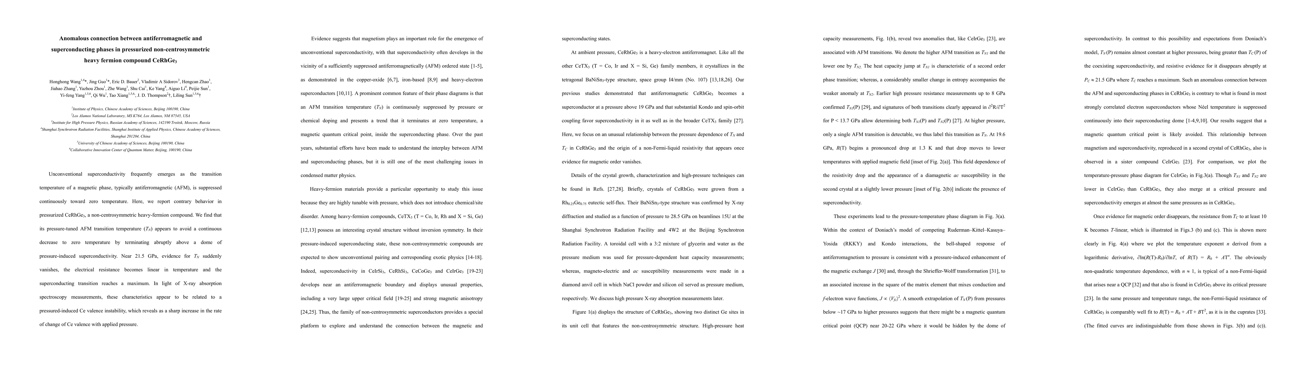 This paper investigates the unusual relationship between antiferromagnetic and superconducting phases in pressurized CeRhGe3, revealing that the antiferromagnetic transition temperature ceases to decrease and abruptly ends above a dome of superconductivity. This behavior is linked to a pressure-induced Ce valence instability.