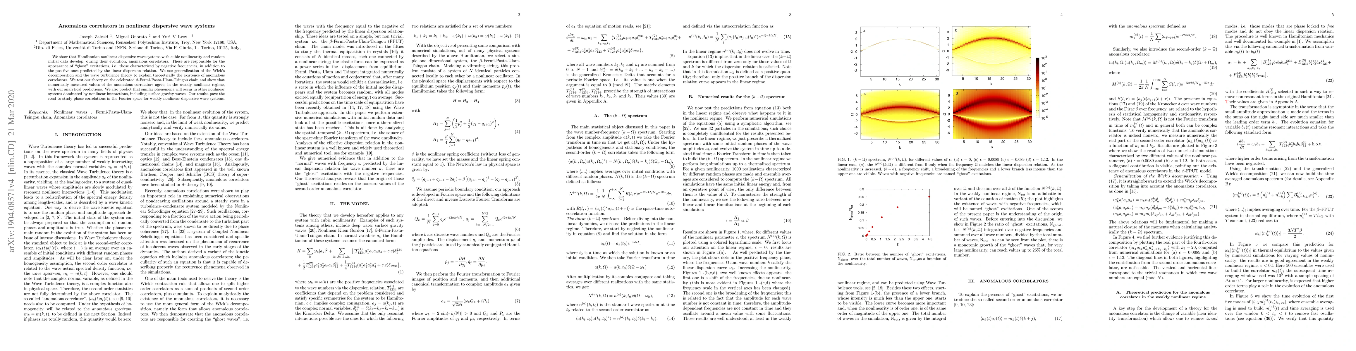 We show that Hamiltonian nonlinear dispersive wave systems with cubic nonlinearity and random initial data develop, during their evolution, anomalous correlators. These are responsible for the appearance of "ghost" excitations, i.e. those characterized by negative frequencies, in addition to the positive ones predicted by the linear dispersion relation. We use generalization of the Wick's decomposition and the wave turbulence theory to explain theoretically the existence of anomalous correlators. We test our theory on the celebrated $\beta$-Fermi-Pasta-Ulam-Tsingou chain and show that numerically measured values of the anomalous correlators agree, in the weakly nonlinear regime, with our analytical predictions. We also predict that similar phenomena will occur in other nonlinear systems dominated by nonlinear interactions, including surface gravity waves. Our results pave the road to study phase correlations in the Fourier space for weakly nonlinear dispersive wave systems.