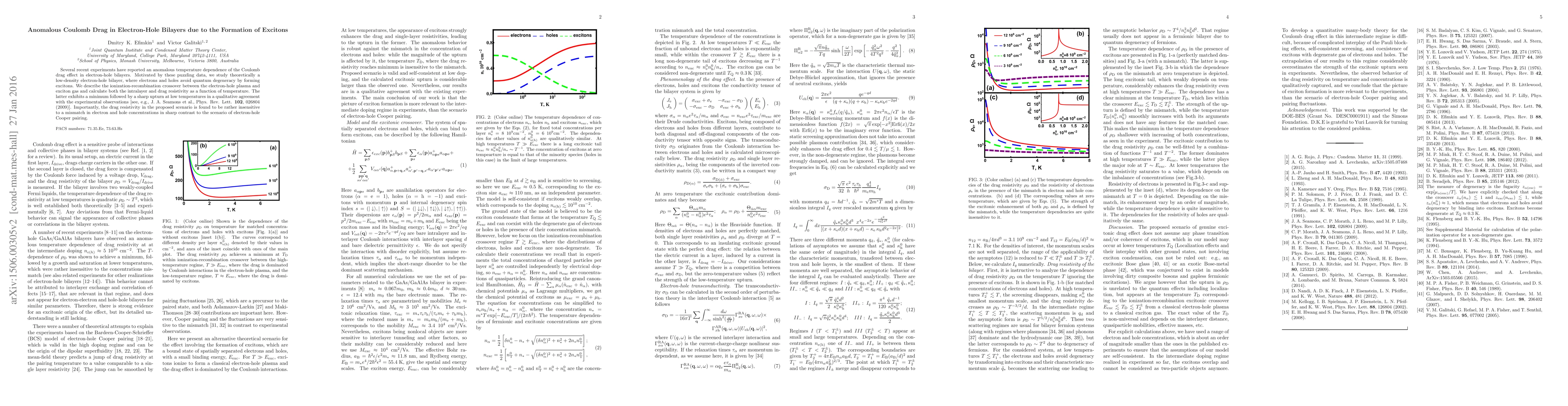 Summary: This research explores the anomalous temperature-dependent Coulomb drag effect in electron-hole bilayers, attributing it to exciton formation and calculating the drag resistivity, which shows a minimum followed by a sharp increase at low temperatures, agreeing with experimental data. The drag resistivity is notably insensitive to concentration mismatches.