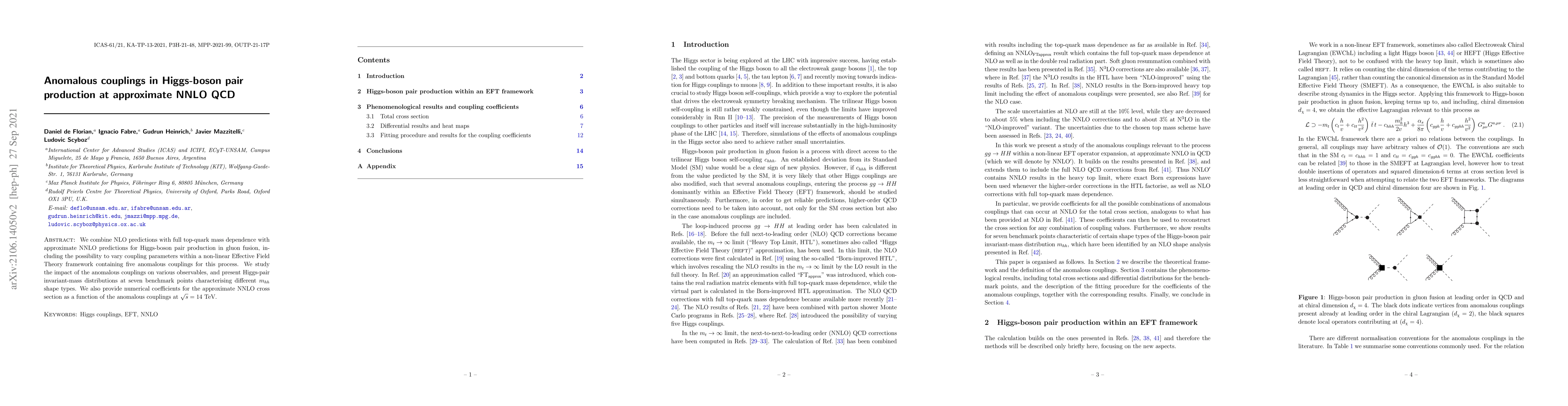 This paper combines next-to-leading order predictions with approximate next-next-to-leading order calculations for Higgs-boson pair production, exploring the effects of five anomalous couplings within a non-linear Effective Field Theory framework. It analyzes the impact of these couplings on various observables and presents results for Higgs-pair invariant-mass distributions at seven benchmark points.